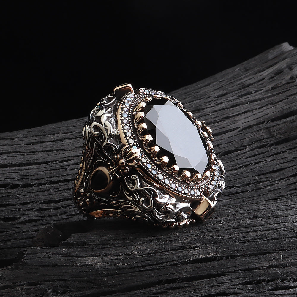 Sultan Serisi Osmanlı Motifi Kehribar Taşlı Gümüş Yüzük