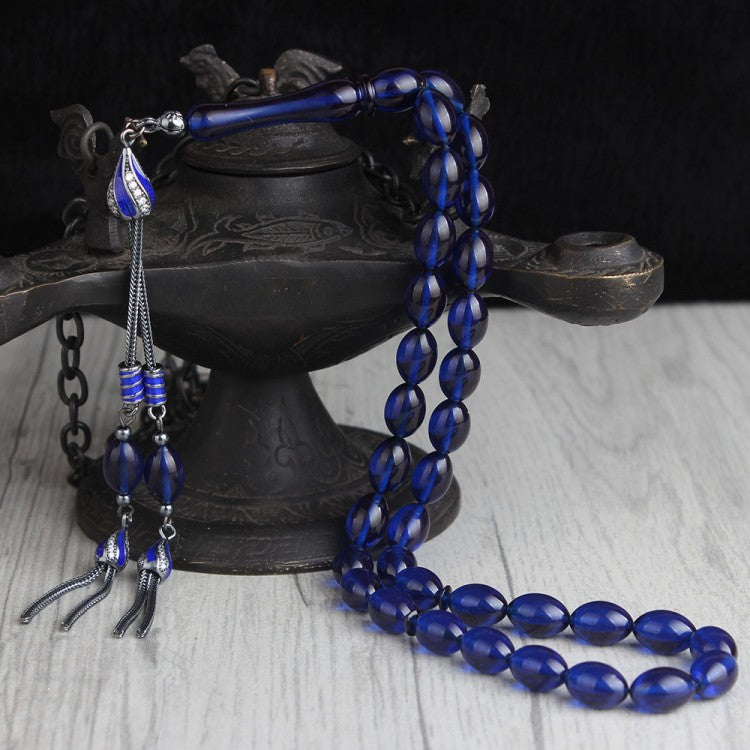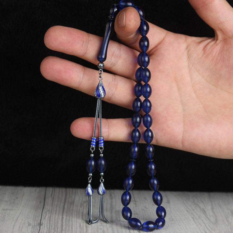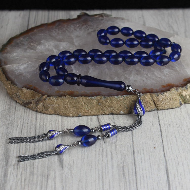 925 Ayar Gümüş Püsküllü Mavi Kehribar Tesbih