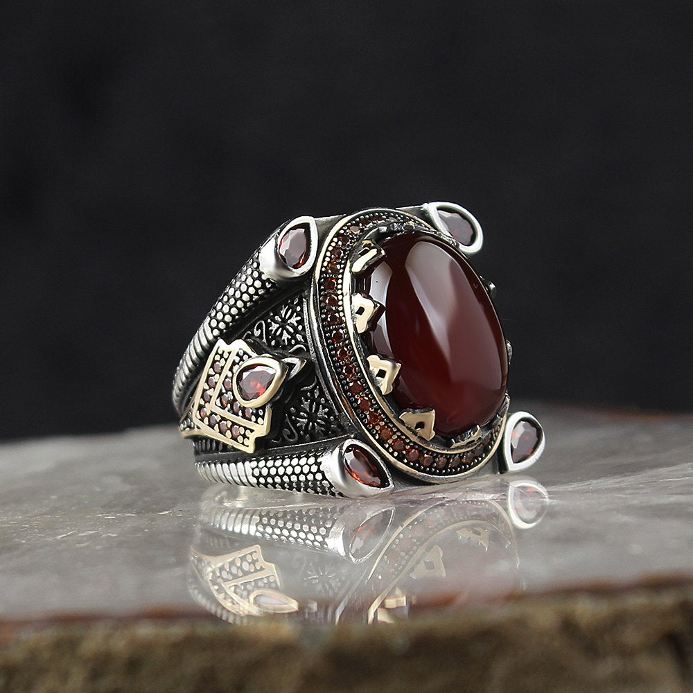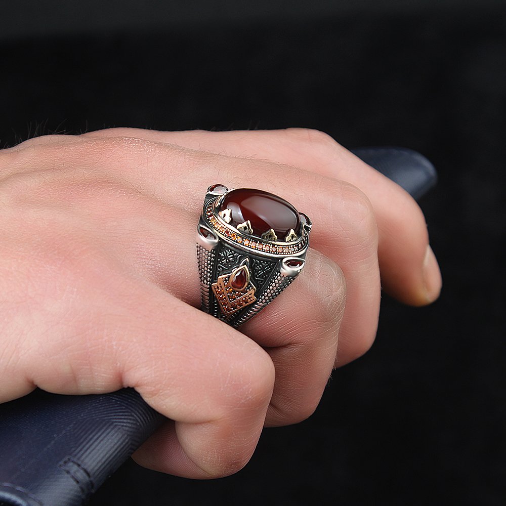 Akik Taşlı 925 Ayar Gümüş Erkek Yüzük