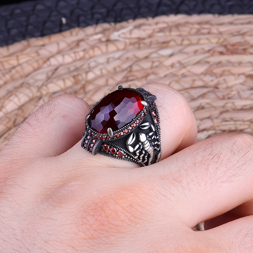 Akrep Motifli Kırmızı Zirkon Taşlı 925 Ayar Gümüş Yüzük
