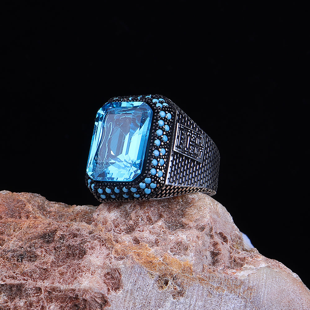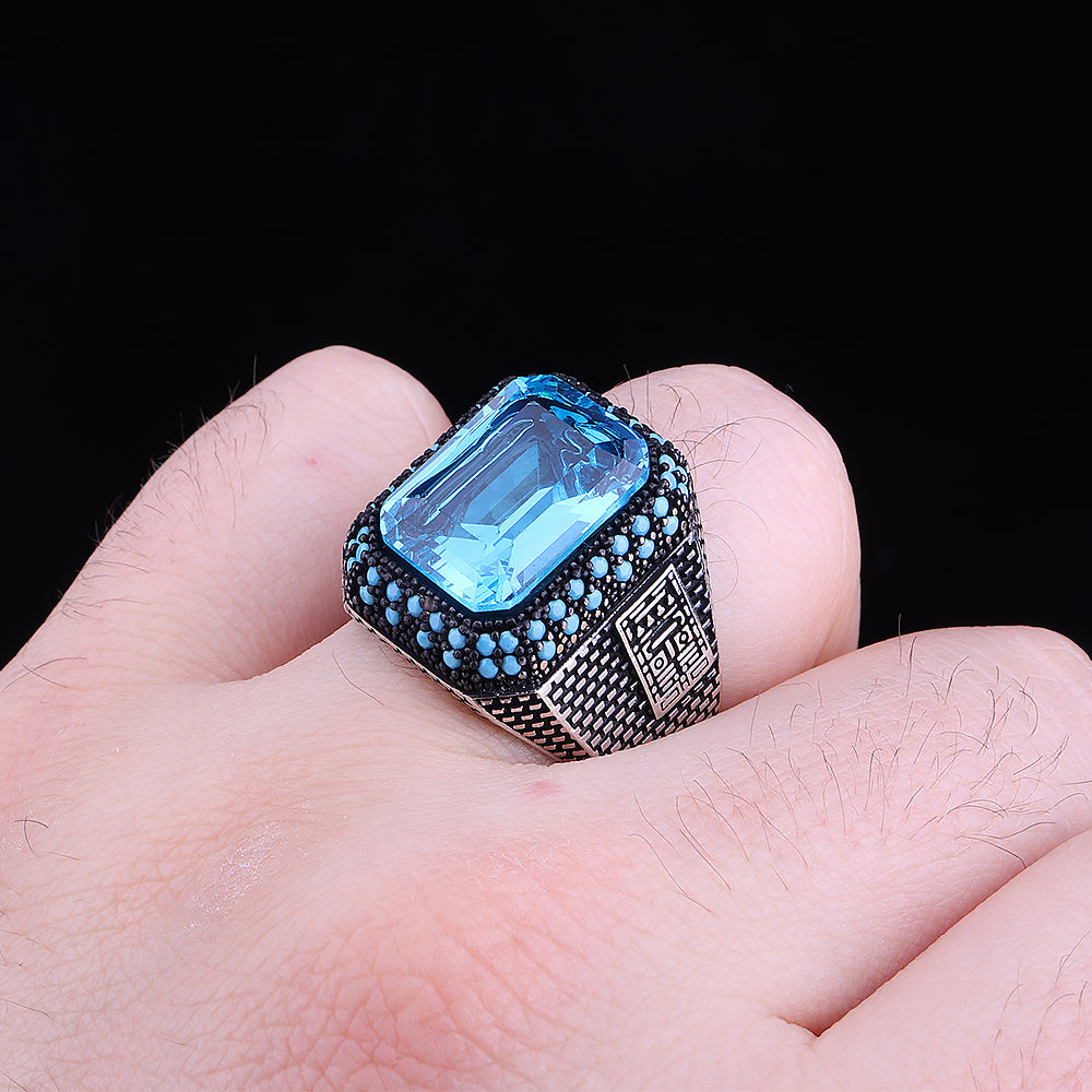 Aqua Taşlı 925 Ayar Gümüş Erkek Yüzük