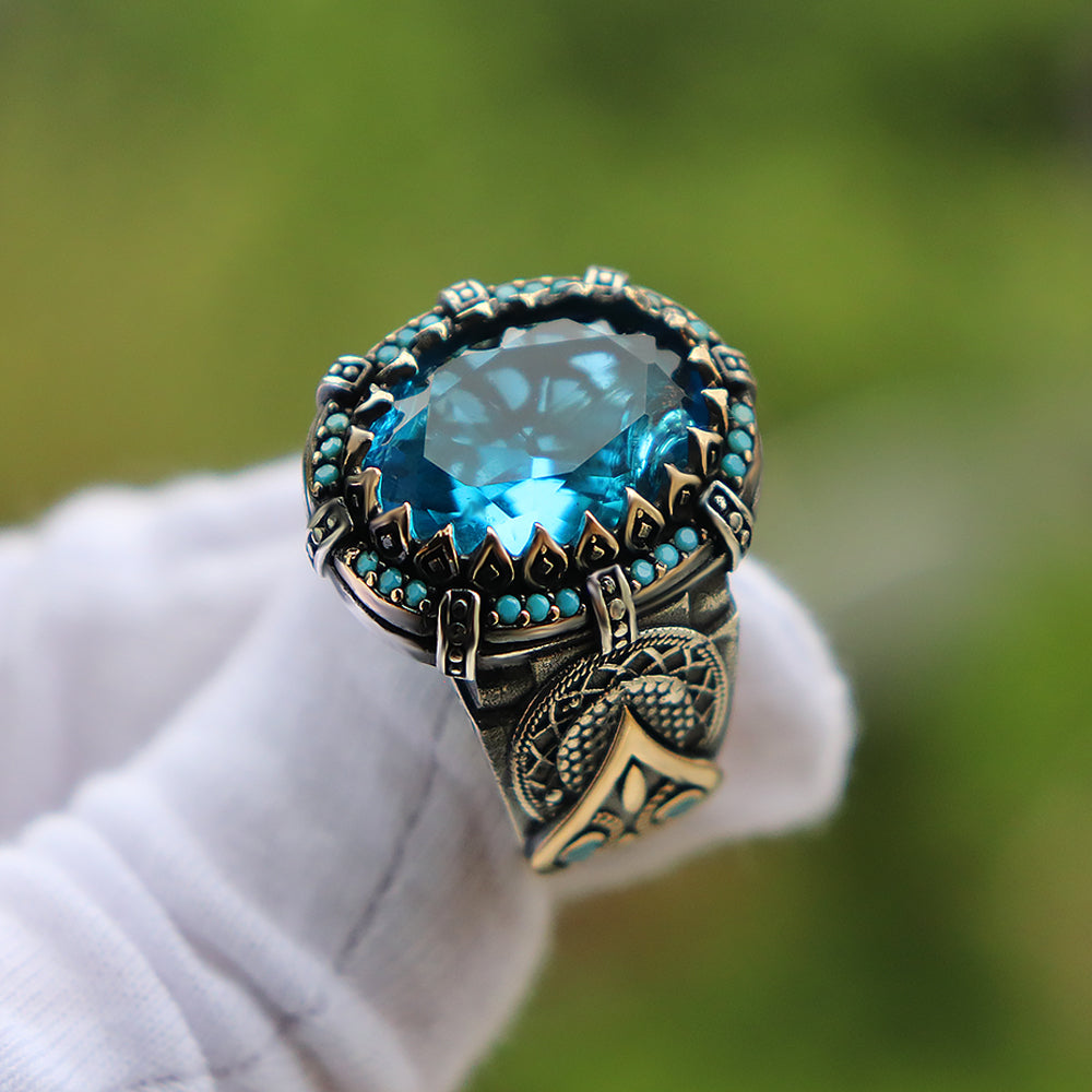 Aqua Taşlı Gümüş Erkek Yüzük Özellikleri;