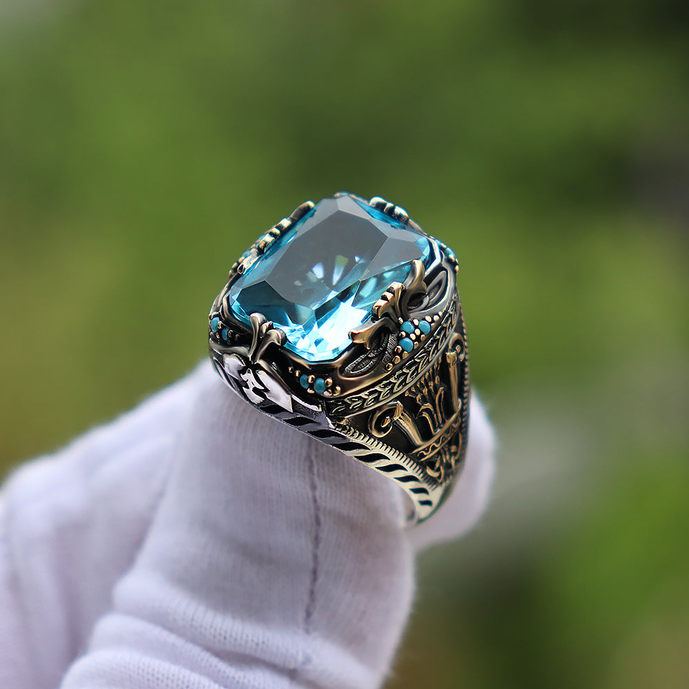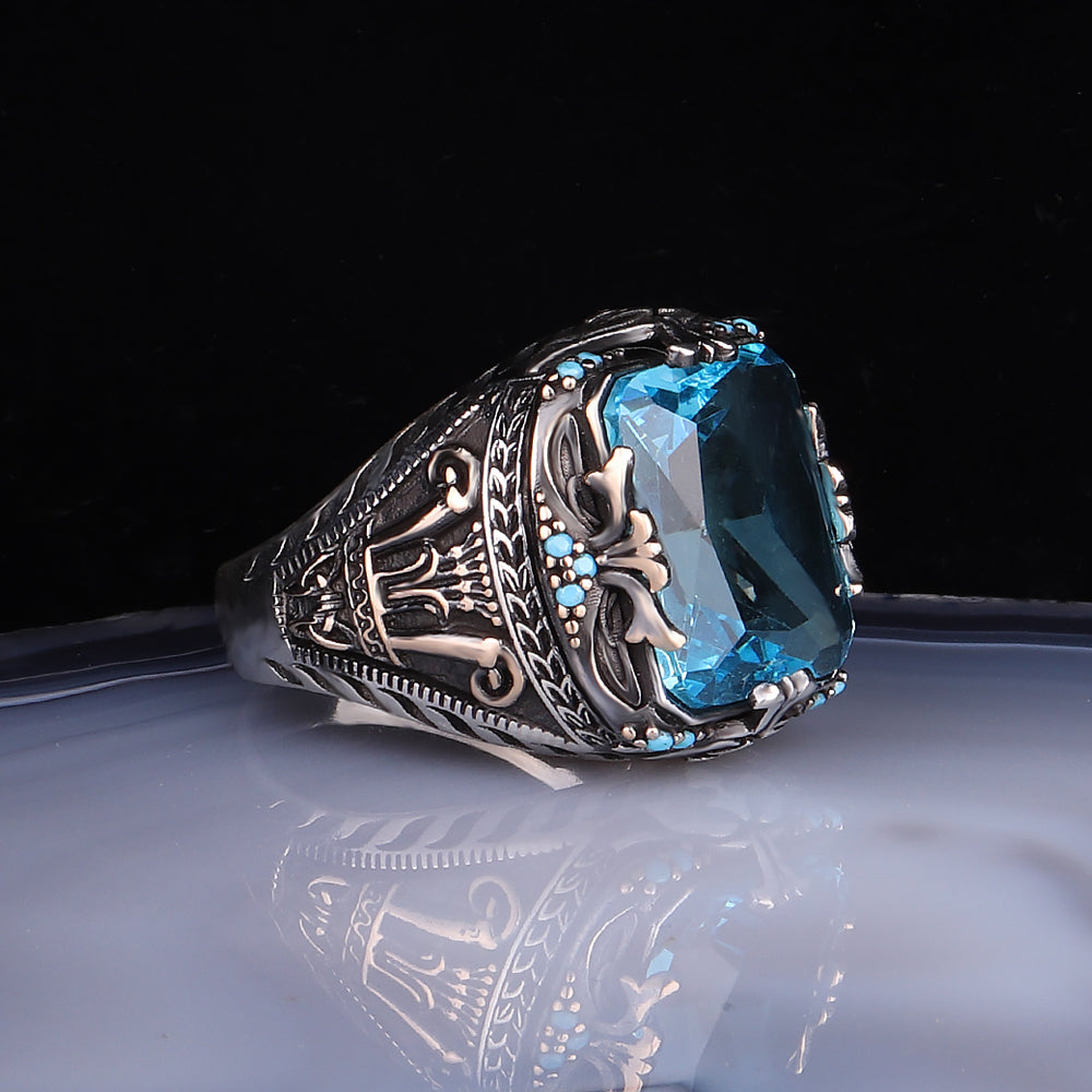 Aqua Taşlı Gümüş Erkek Yüzük Özellikleri;