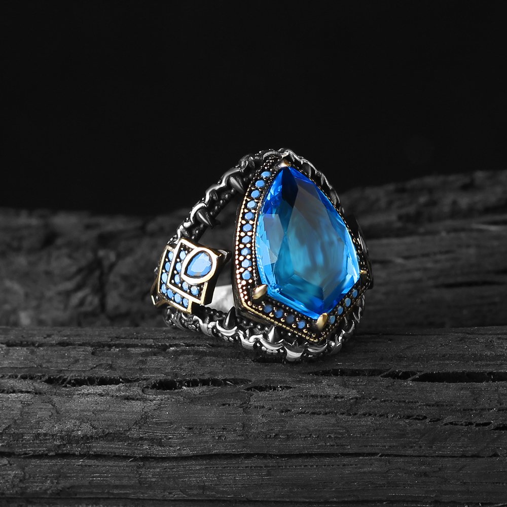 Aqua Taşlı Erkek Gümüş Yüzük Modelleri
