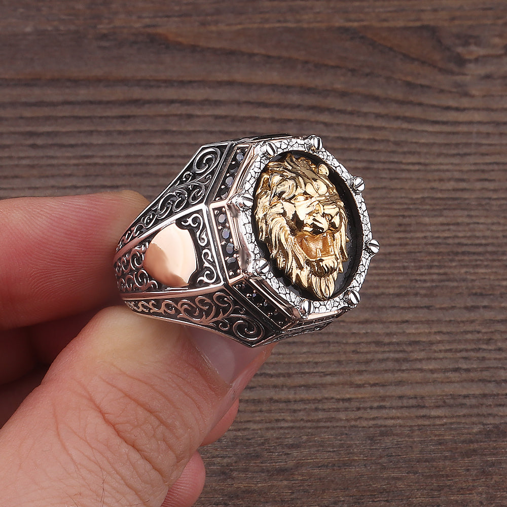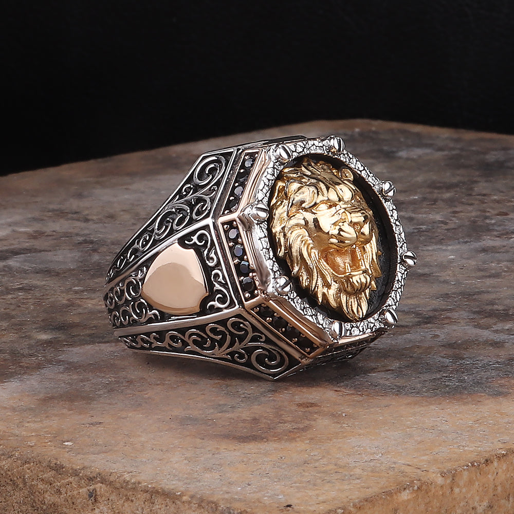 Aslan Motifli İşlemeli 925 Ayar Erkek Gümüş Yüzük