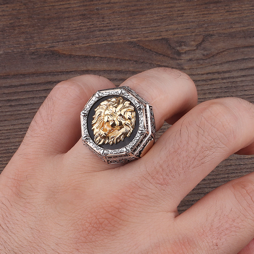 Aslan Motifi İşlemeli 925 Ayar Erkek Gümüş Yüzük