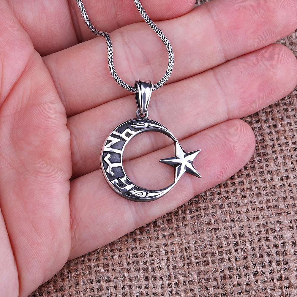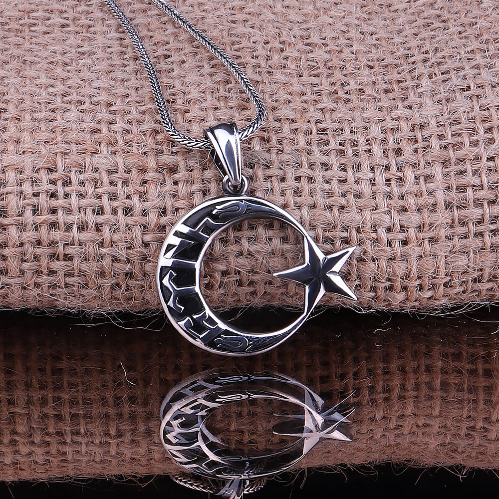 Ay Yıldızlı Göktürkçe Türk işlemeli 925 Ayar Gümüş Kolye