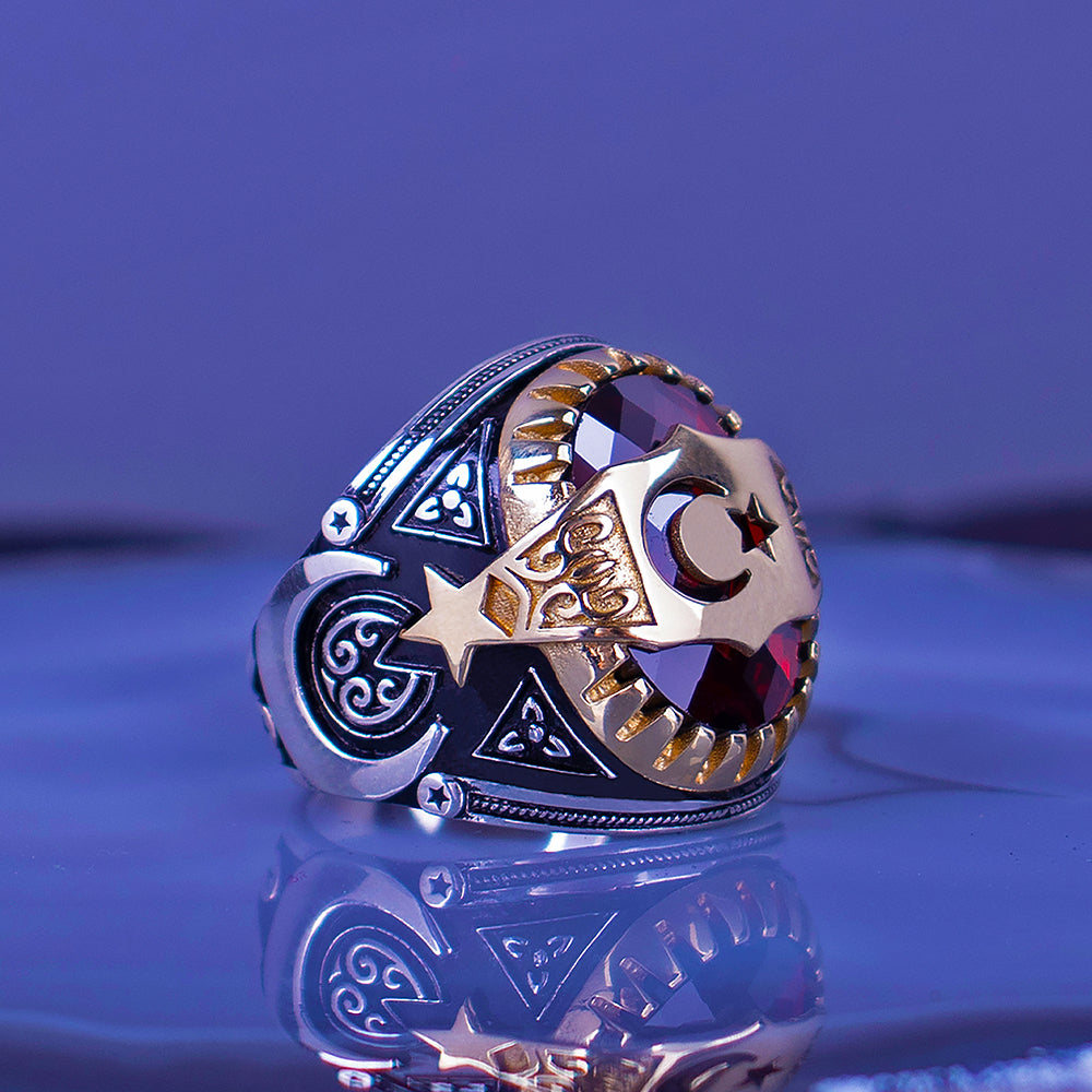 Erkek yüzükleri arasında en çok tercih edilen gümüş yüzük çeşitlerinden biri de taşlı yüzük modelleridir. Yüzükhane özel tasarımlarından biri olan Ay Yıldız Motifli Zirkon Taşlı 925 Ayar Gümüş Yüzük modelimize ait bilgiler aşağıda verilmiştir.