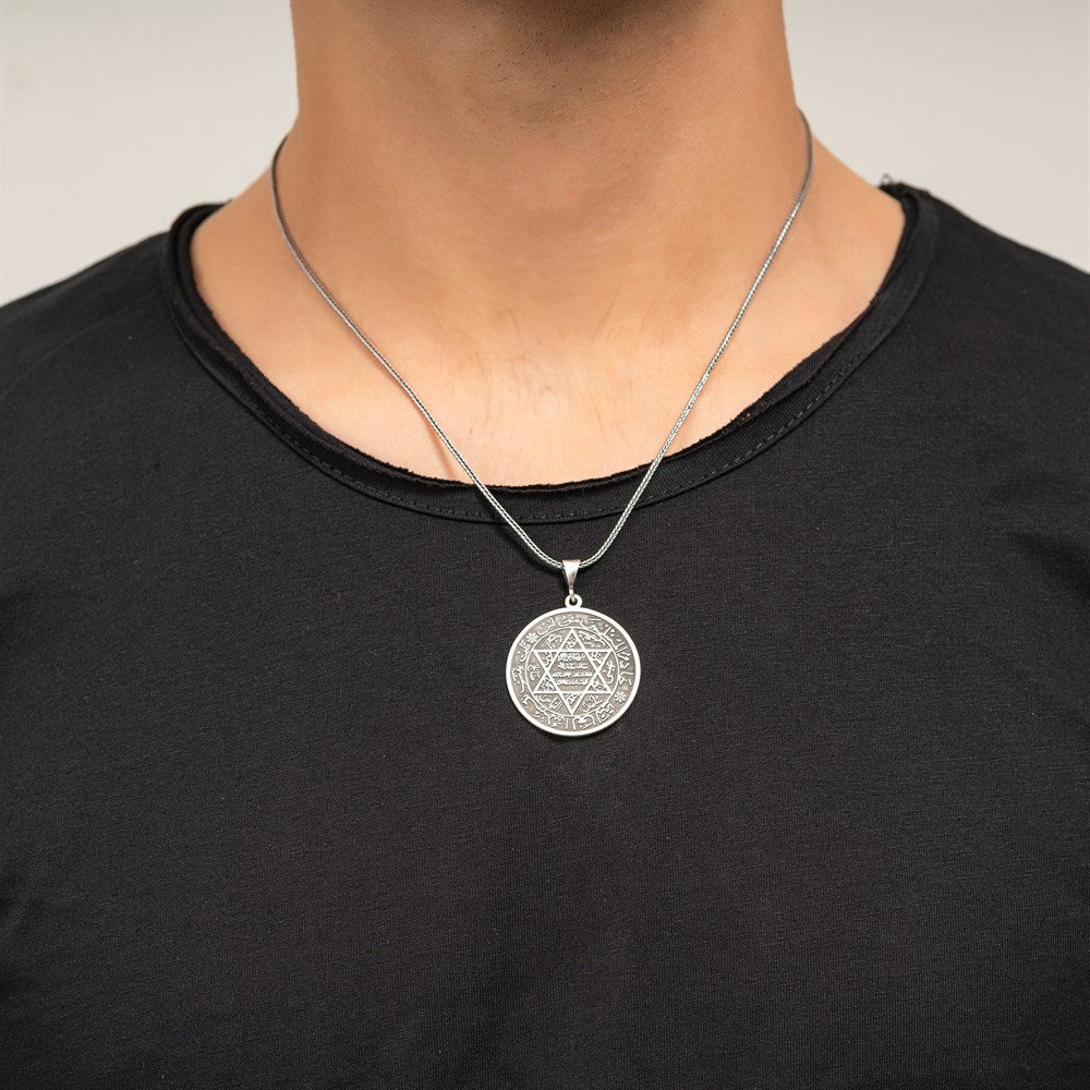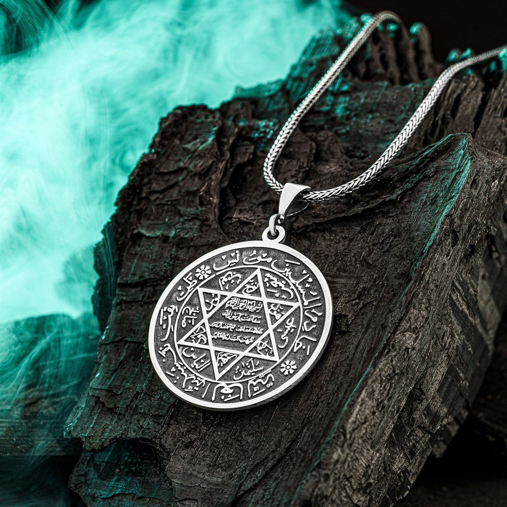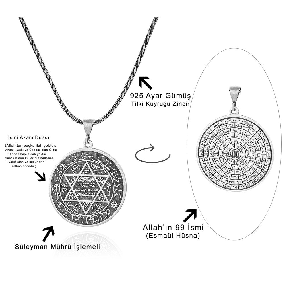 Esmaül Hüsna ve Süleyman Mührü İşlemeli Gümüş Kolye