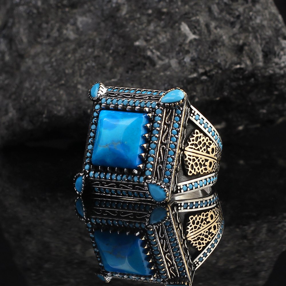 Firuze Taşlı 925 Ayar Gümüş Erkek Yüzük