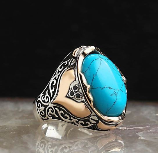 Firuze taşıyla huzuru ve korumayı simgeleyen, 925 ayar gümüşten üretilmiş zarif erkek yüzük. Doğal taşın enerjisi ve kaliteli gümüş işçiliğiyle stilinizi tamamlayın. Hem şık tasarımı hem de dayanıklılığıyla dikkat çeken bu yüzük, özgün ve güçlü bir aksesuar arayan erkekler için ideal.