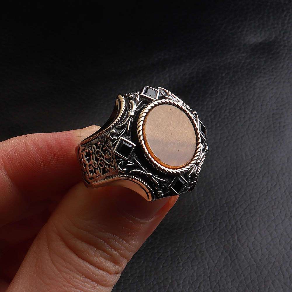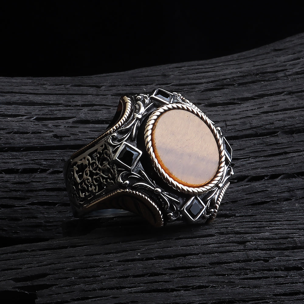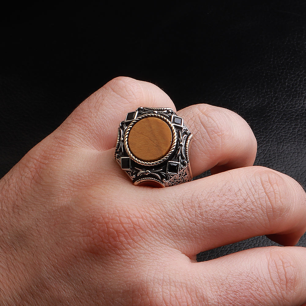 Göktuğ Serisi Kaplan Gözü Taşlı 925 Ayar Gümüş Yüzük