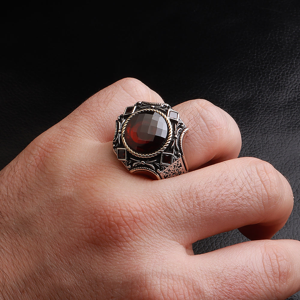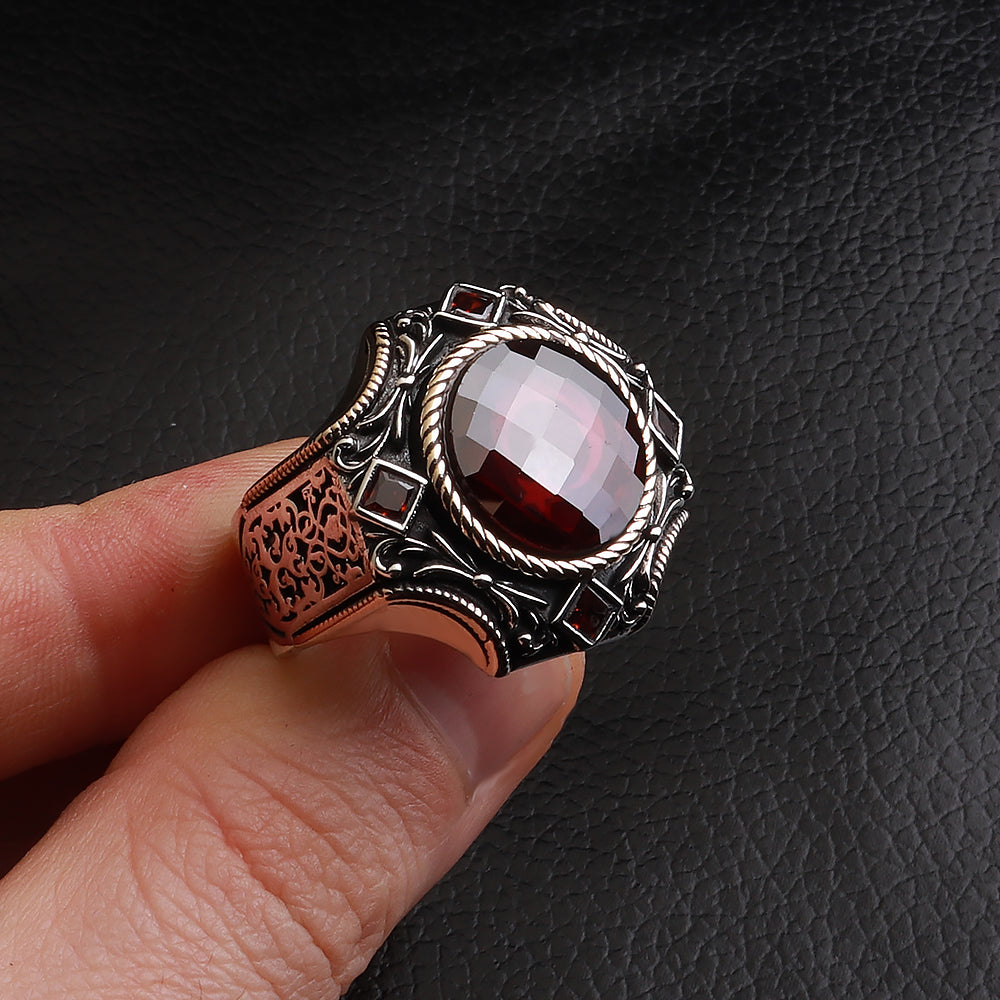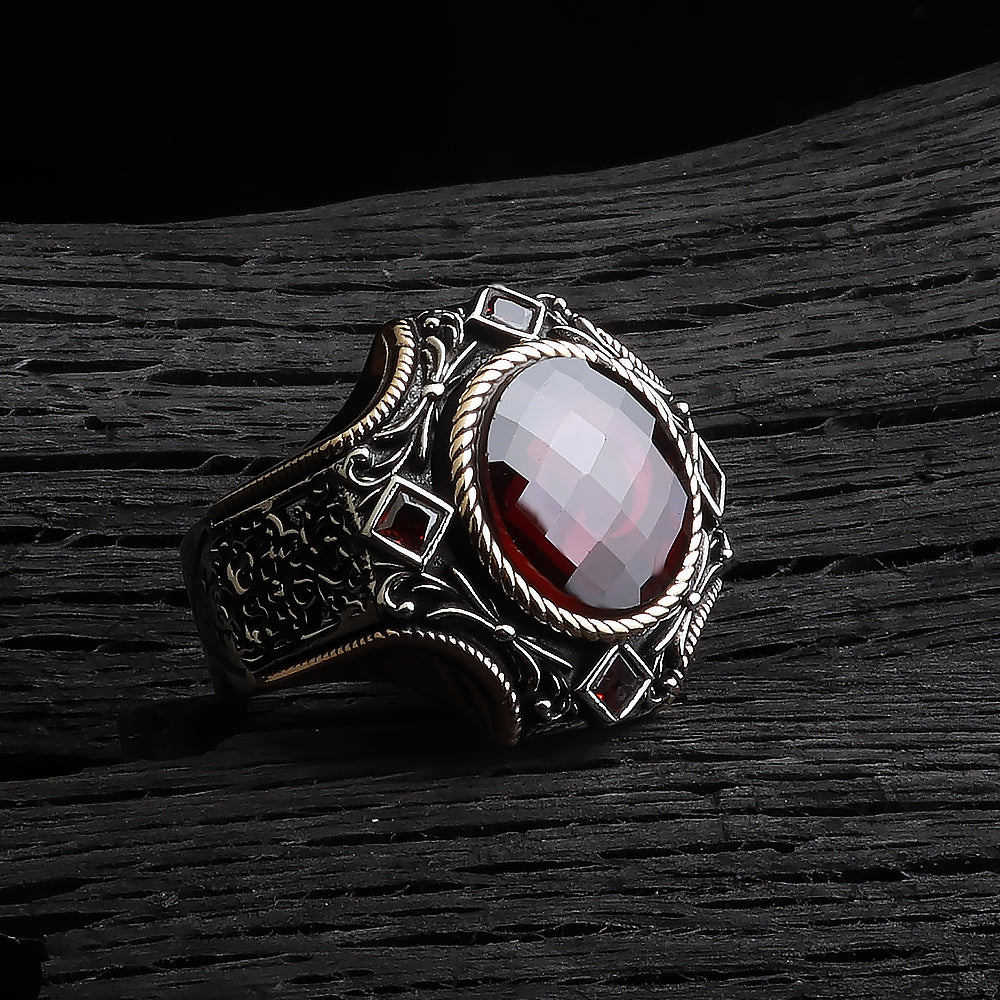 Göktuğ Serisi Kırmızı Zirkon Taşlı 925 Ayar Gümüş Yüzük