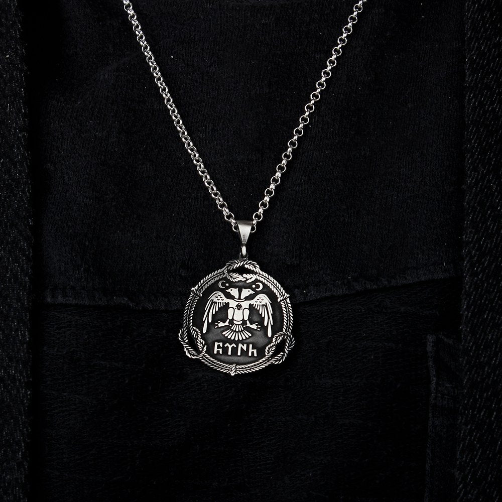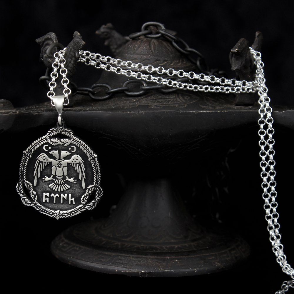 Göktürkçe Türk Yazılı Selçuklu Armalı 925 Ayar Gümüş Erkek Kolye