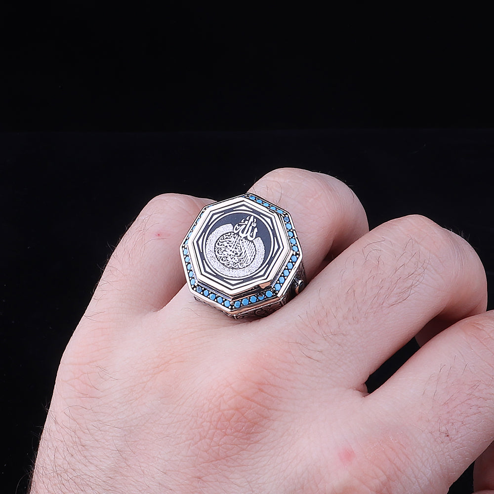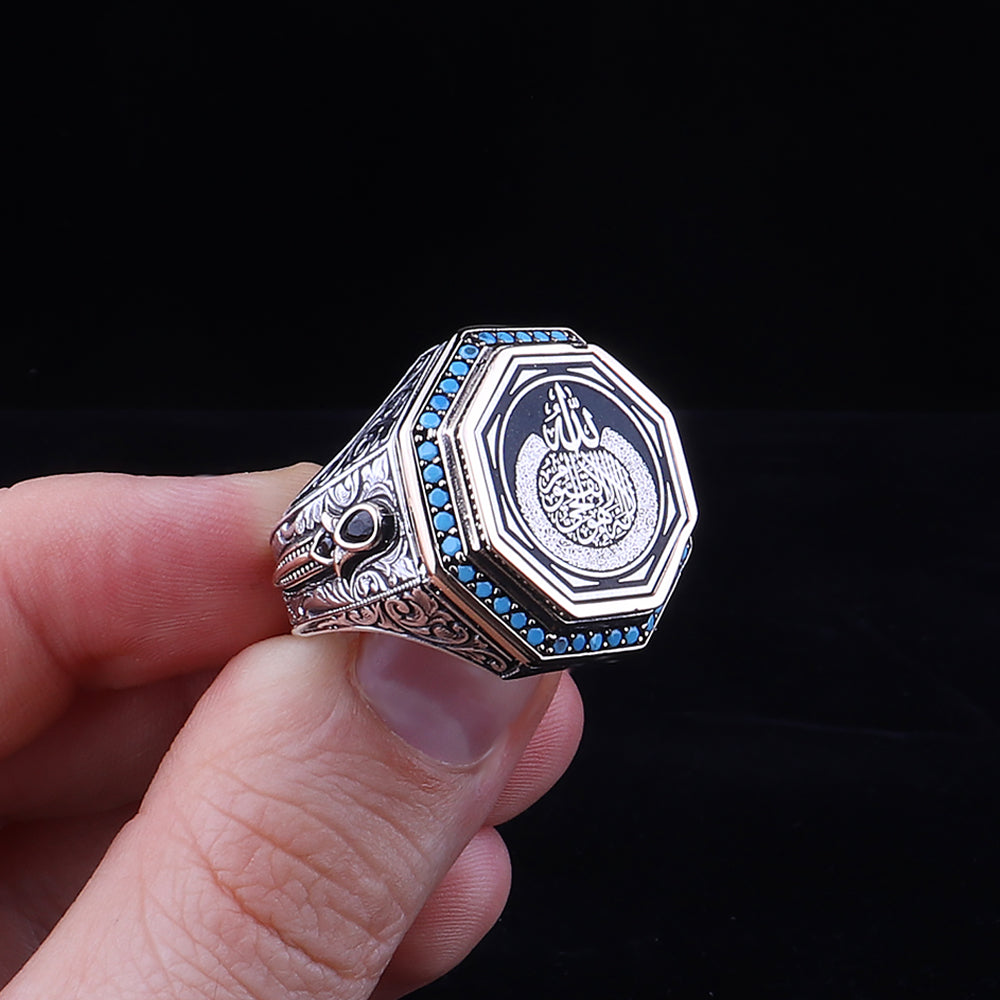 Özel Gravür İşlemeli Ayetel Kürsi Motifli 925 Ayar Erkek Gümüş Yüzük