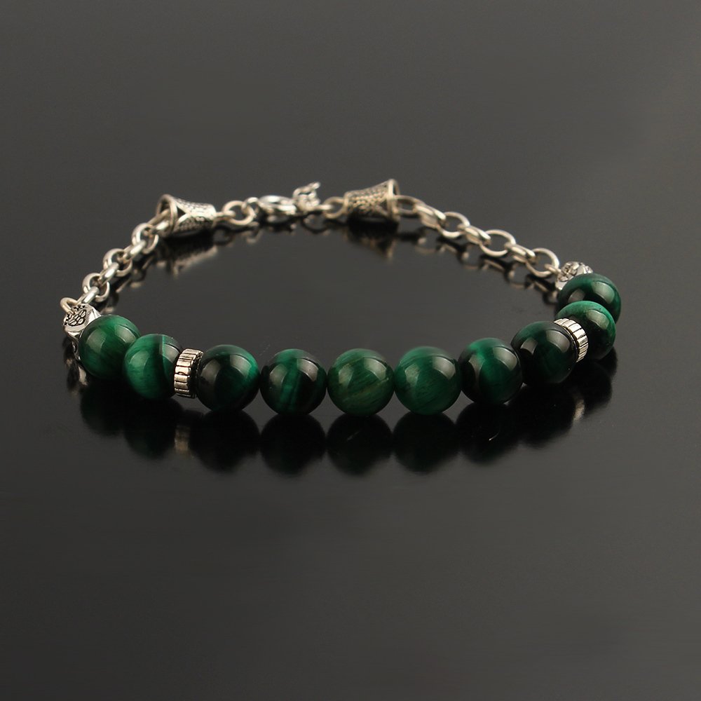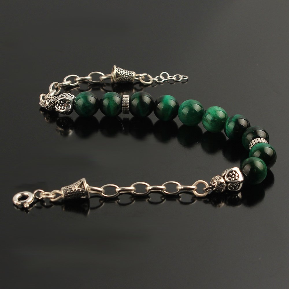 Erkek bileklikleri arasında kaplangözü taşlı gümüş bileklik modelleri de tercih edilmektedir. Yüzükhane özel tasarımlarından biri olana Gümüş Zincirli Yeşil Kaplangözü Taşlı 925 Ayar Bileklik modelimize ait bilgiler aşağıda verilmiştir.