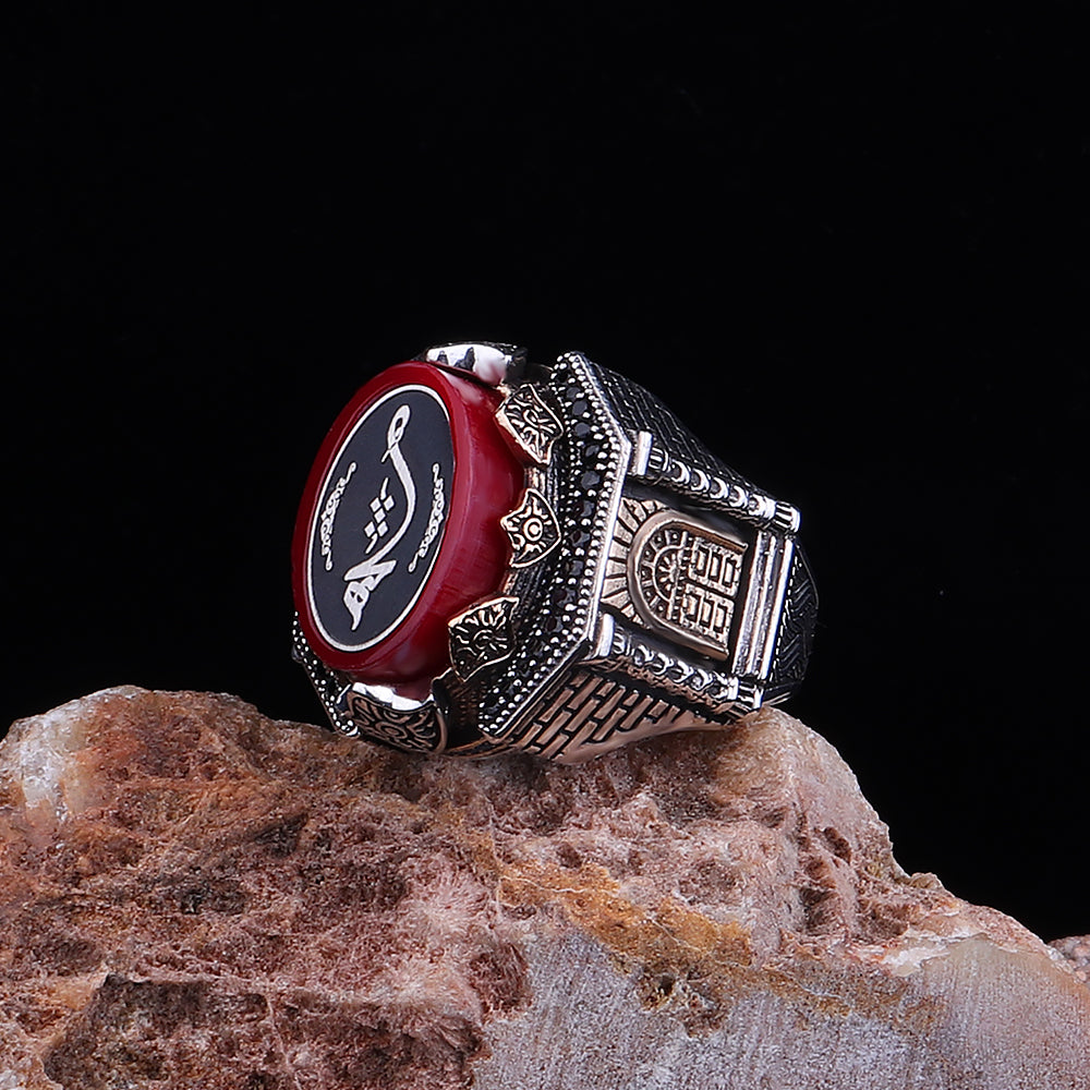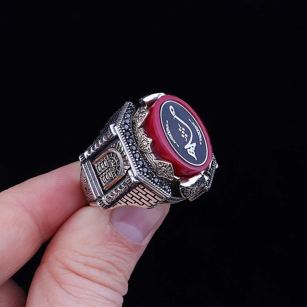 Kehribar taşlı işlemeli yüzükler arasında tercih edilen yüzük modellerinden biri de islami erkek gümüş yüzük modelleridir. Yüzükhane özel tasarımlarından biri olan Hiç Motifli Kale Model Kehribar Taşlı Gümüş Yüzük modelimize ait bilgiler aşağıda verilmiştir.