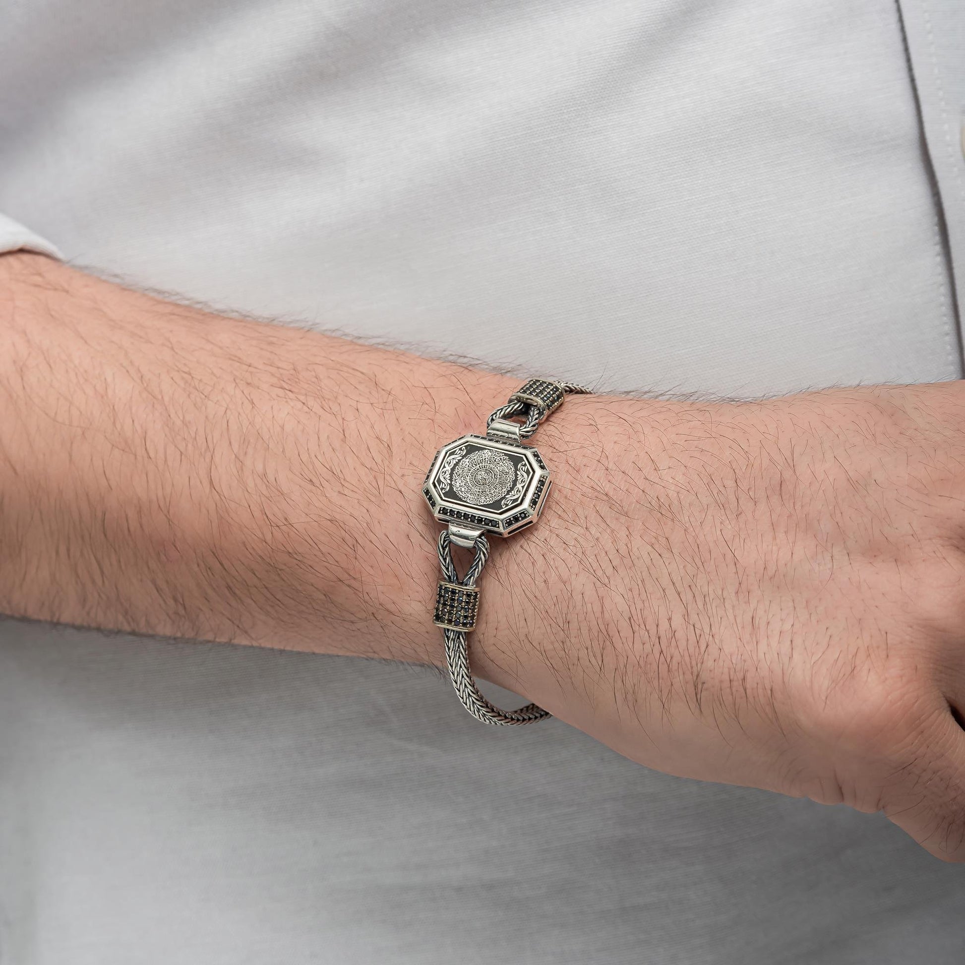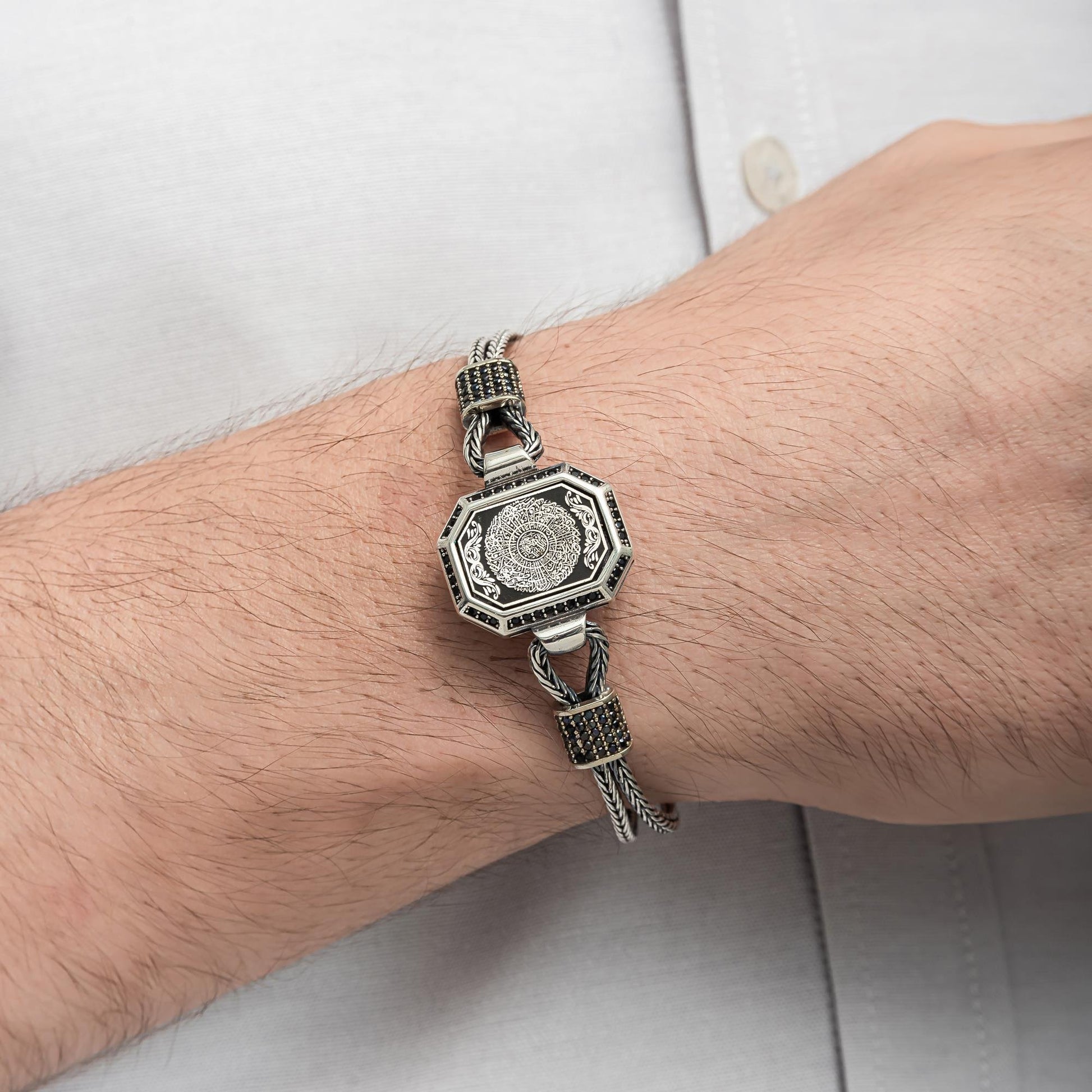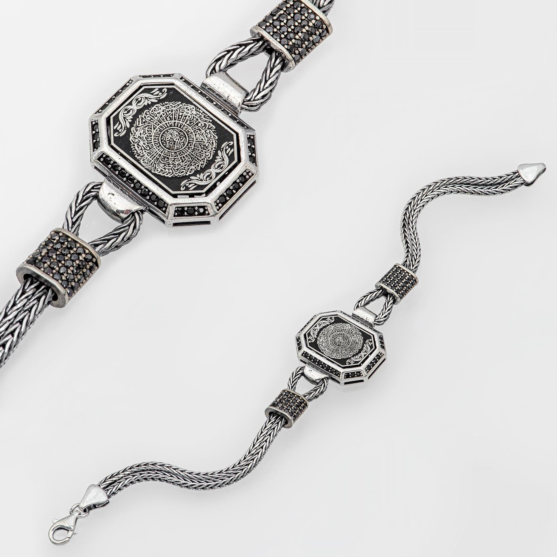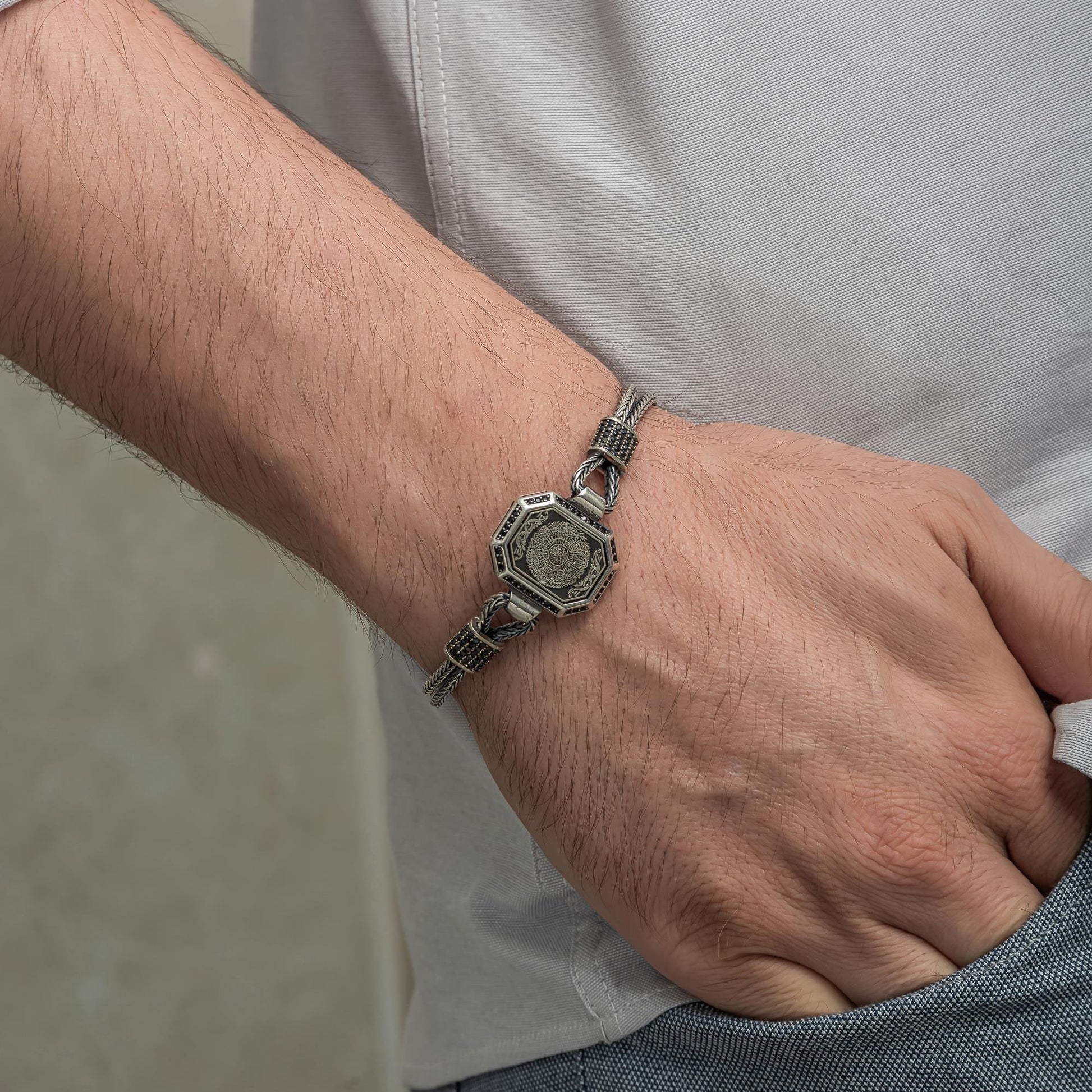 İnşirah Suresi işlemeli 925 ayar gümüş bileklik, manevi değer içeren zarif bir aksesuardır. Kaliteli gümüş işçiliği ve ince ayrıntılarla öne çıkan bu bileklik, hem günlük hem de özel günlere uygundur. İnşirah Suresi'nin huzur veren mesajını bileğinizde taşırken, şıklığınızı tamamlayın.