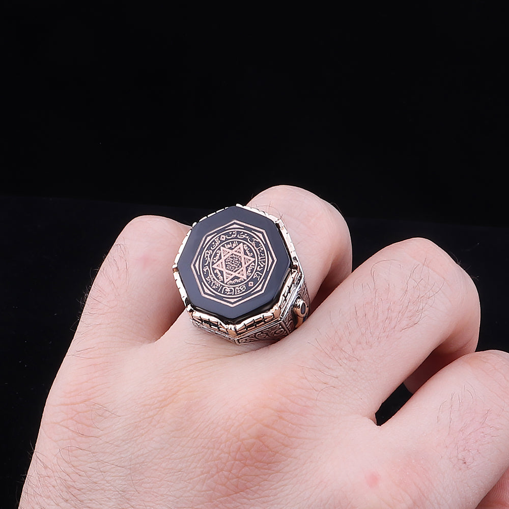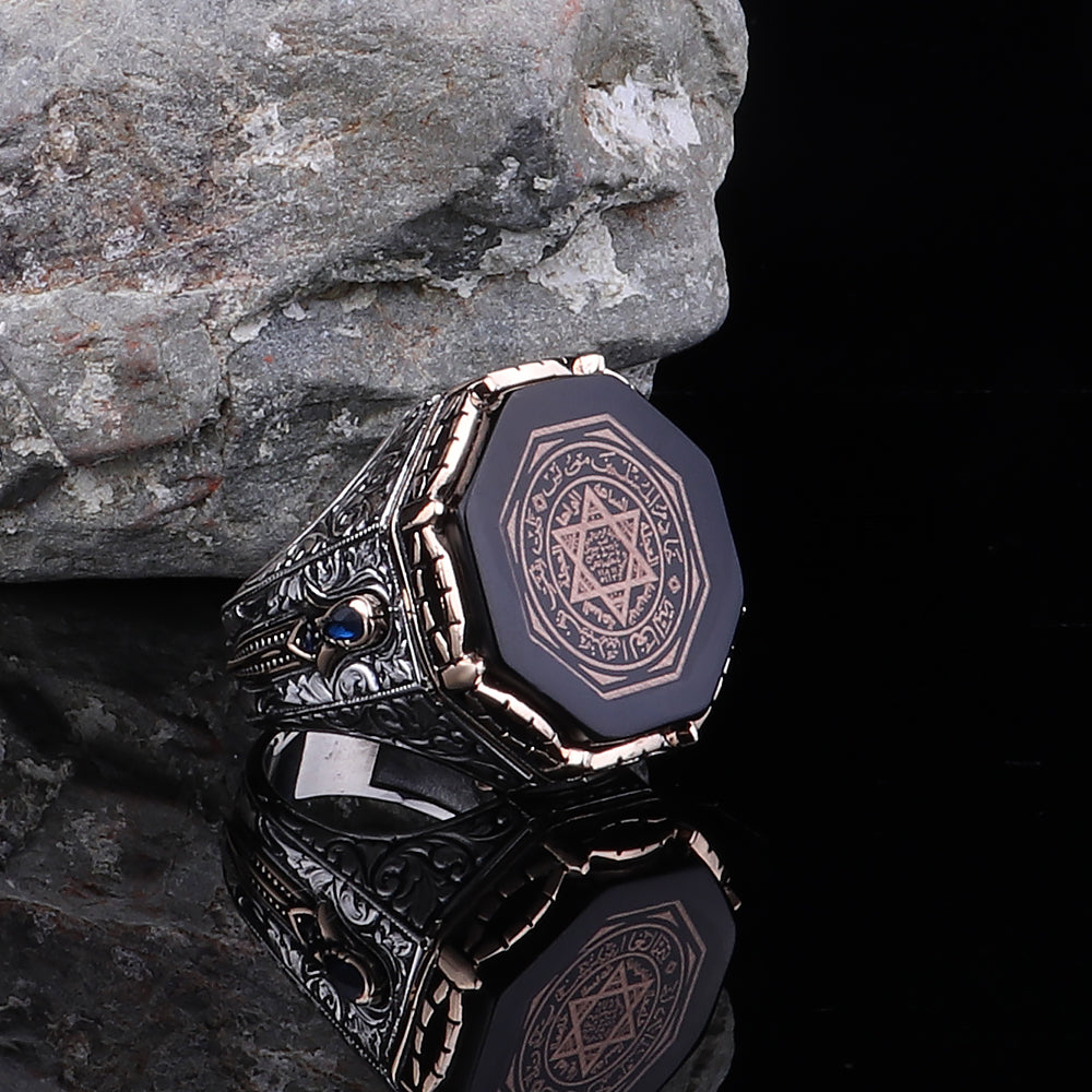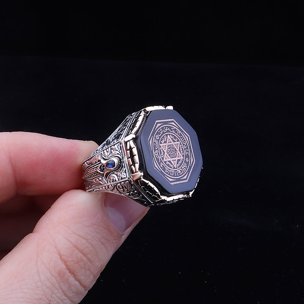 Özel Gravür İşlemeli Mührü Süleyman Motifli 925 Ayar Erkek Gümüş Yüzük