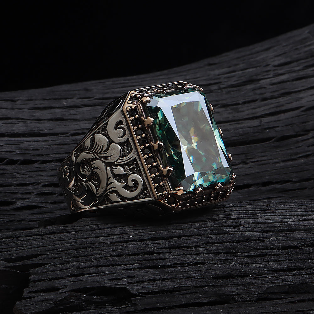 Kalem İşleme Orijinal Mozanit Taşlı 925 Ayar Gümüş Yüzük