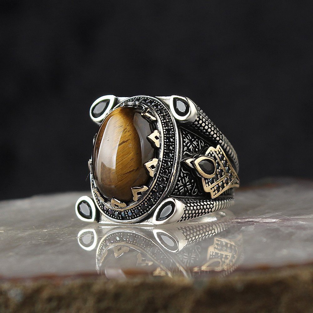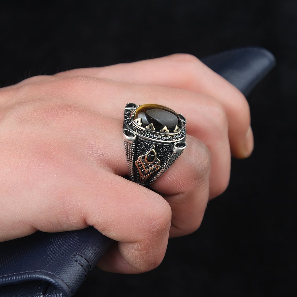 Kaplangözü Taşlı 925 Ayar Gümüş Erkek Yüzük