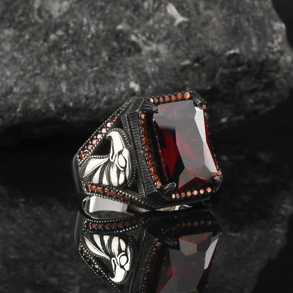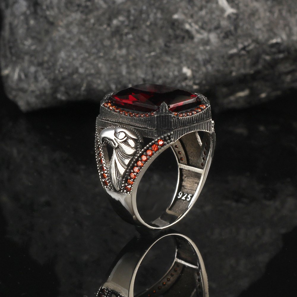 Erkek yüzükleri arasında en çok tercih edilen gümüş yüzük zirkon taşlı yüzük modelleridir. Yüzükhane özel tasarımlarından biri olan Kartal Motifli Yüzük modelimize ait bilgiler aşağıda verilmiştir.