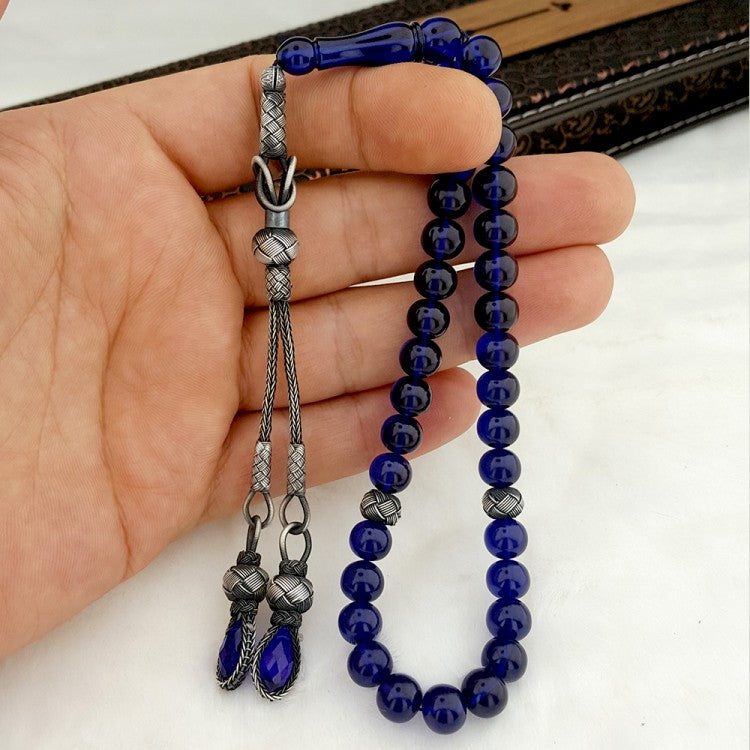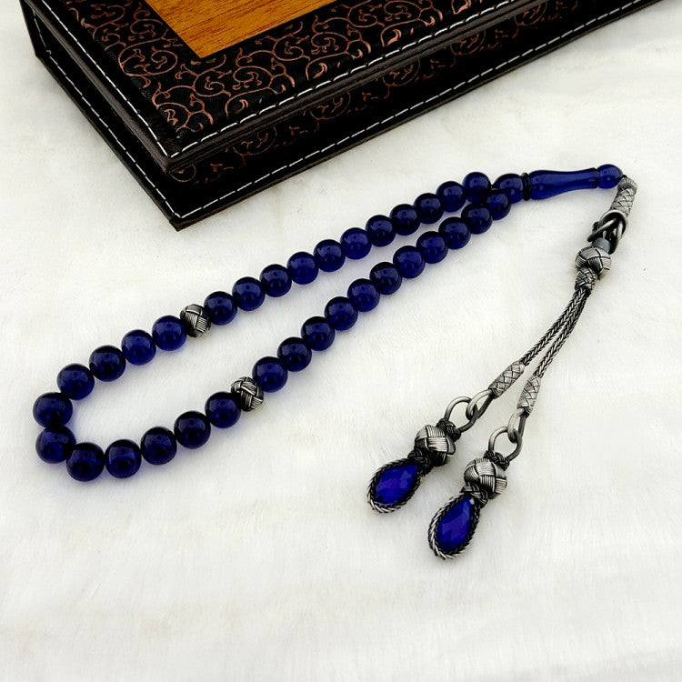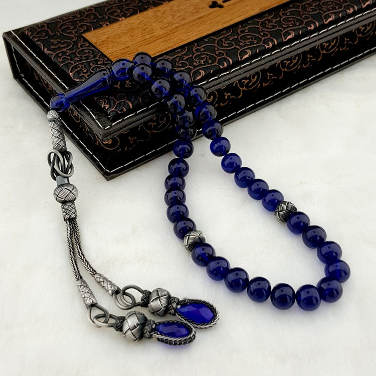 Gümüş Püsküllü Mavi Ateş Kehribar Tesbih