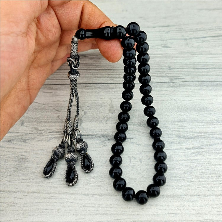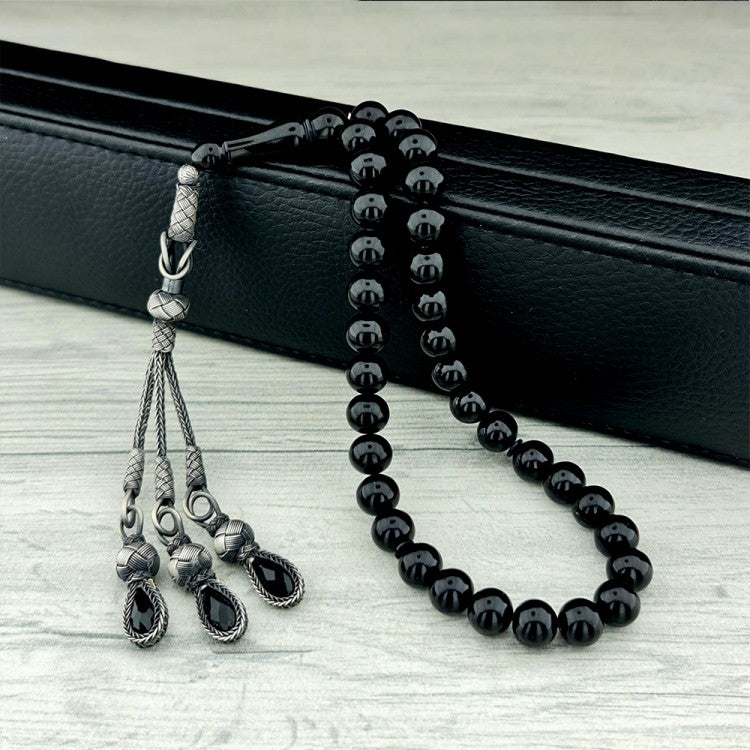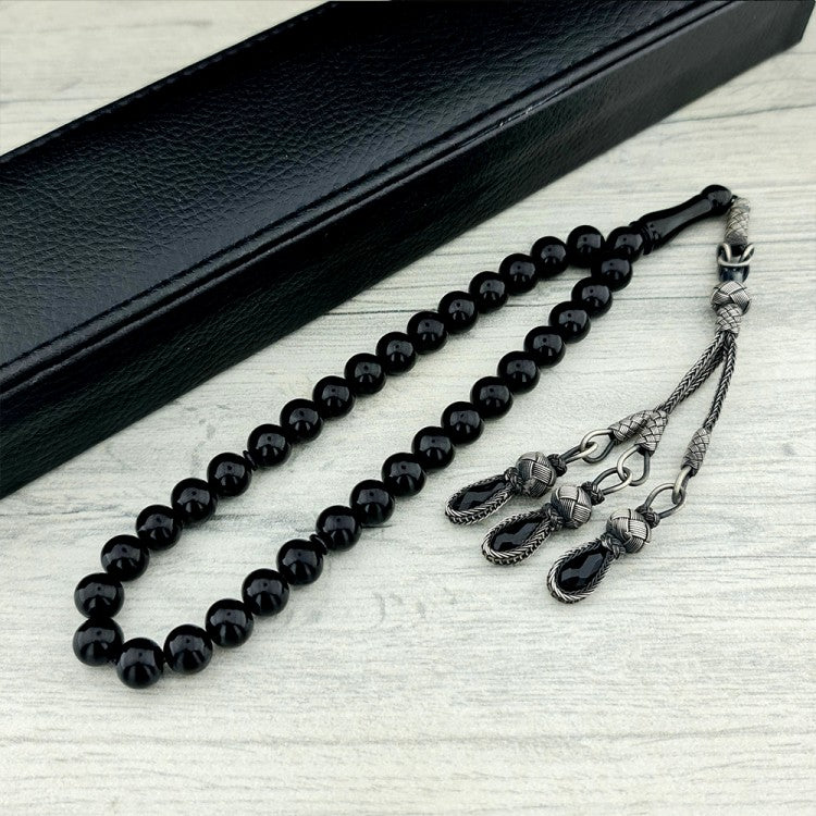 Kazaz Gümüş Püsküllü Siyah Ateş Kehribar Tesbih