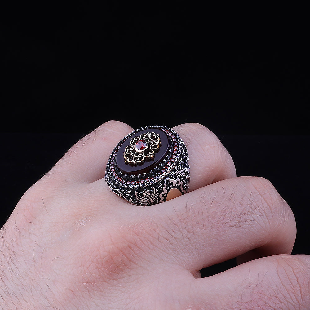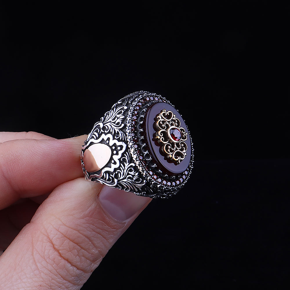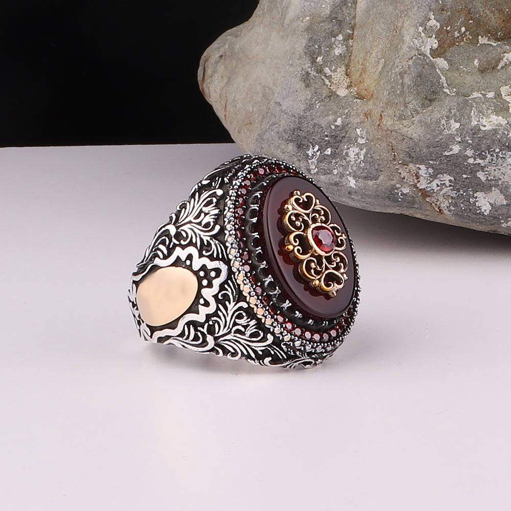 Kırmızı Akik Taşlı 925 Ayar Gümüş Erkek Yüzük