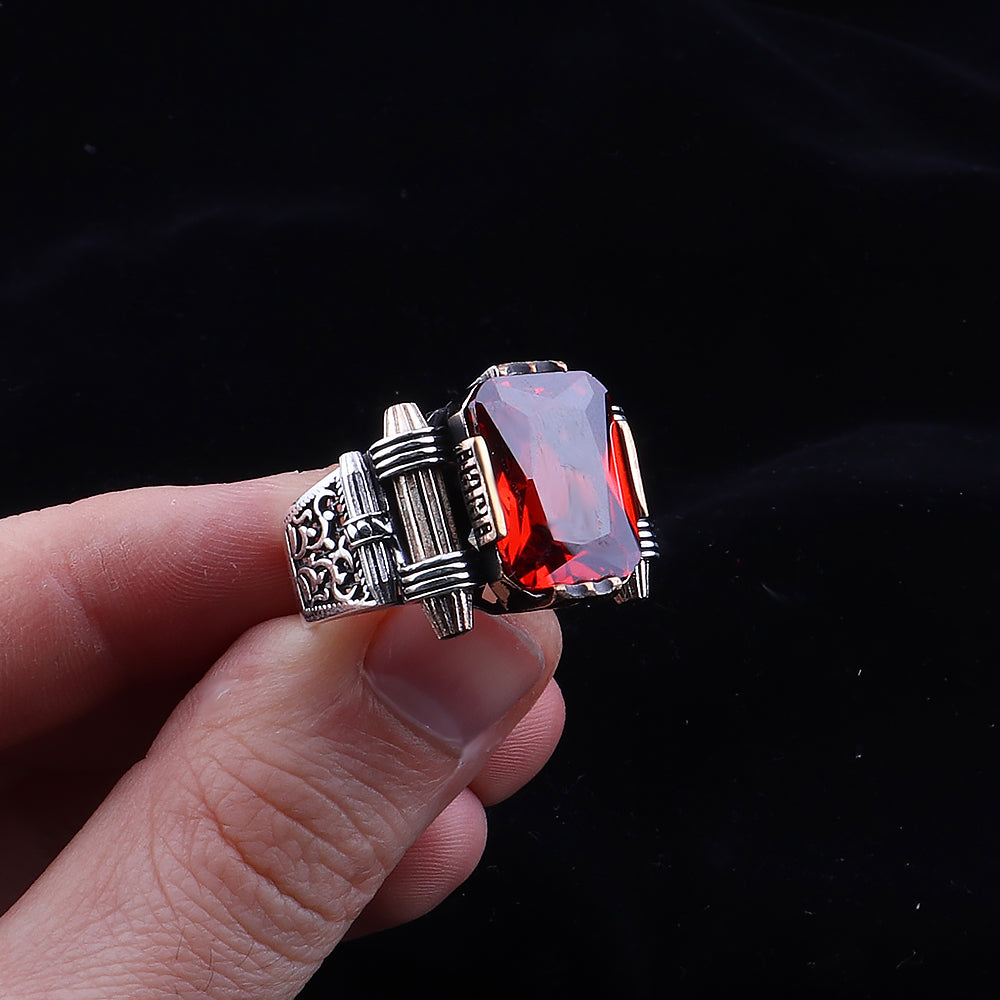 Kırmızı zirkon taşlı 925 ayar gümüş erkek yüzük, enerjik rengi ve güçlü durmayla dikkat çeker. Kırmızı taşlı erkek yüzük, zirkon taşlı gümüş yüzük ve 925 ayar yüzük modelleri arayanlara özel, modern ve şık bir tasarım sunar.