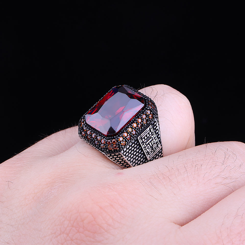 Erkek yüzükleri arasında en çok tercih edilen gümüş yüzük kırmızı zirkon taşlı erkek yüzük modelleridir. Yüzükhane özel tasarımlarından biri olan Kırmızı Zirkon Erkek Yüzük modelimize ait bilgiler aşağıda verilmiştir.