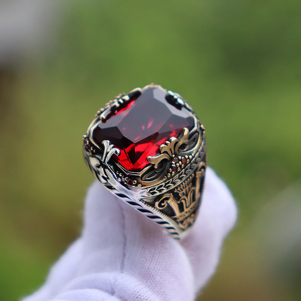 Kırmızı Zirkon Taşlı 925 Ayar Gümüş Yüzük