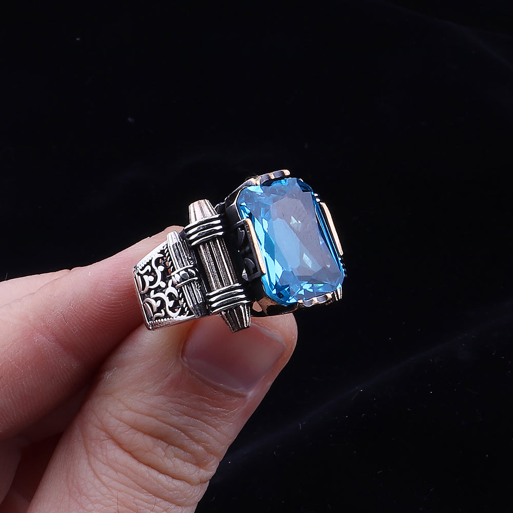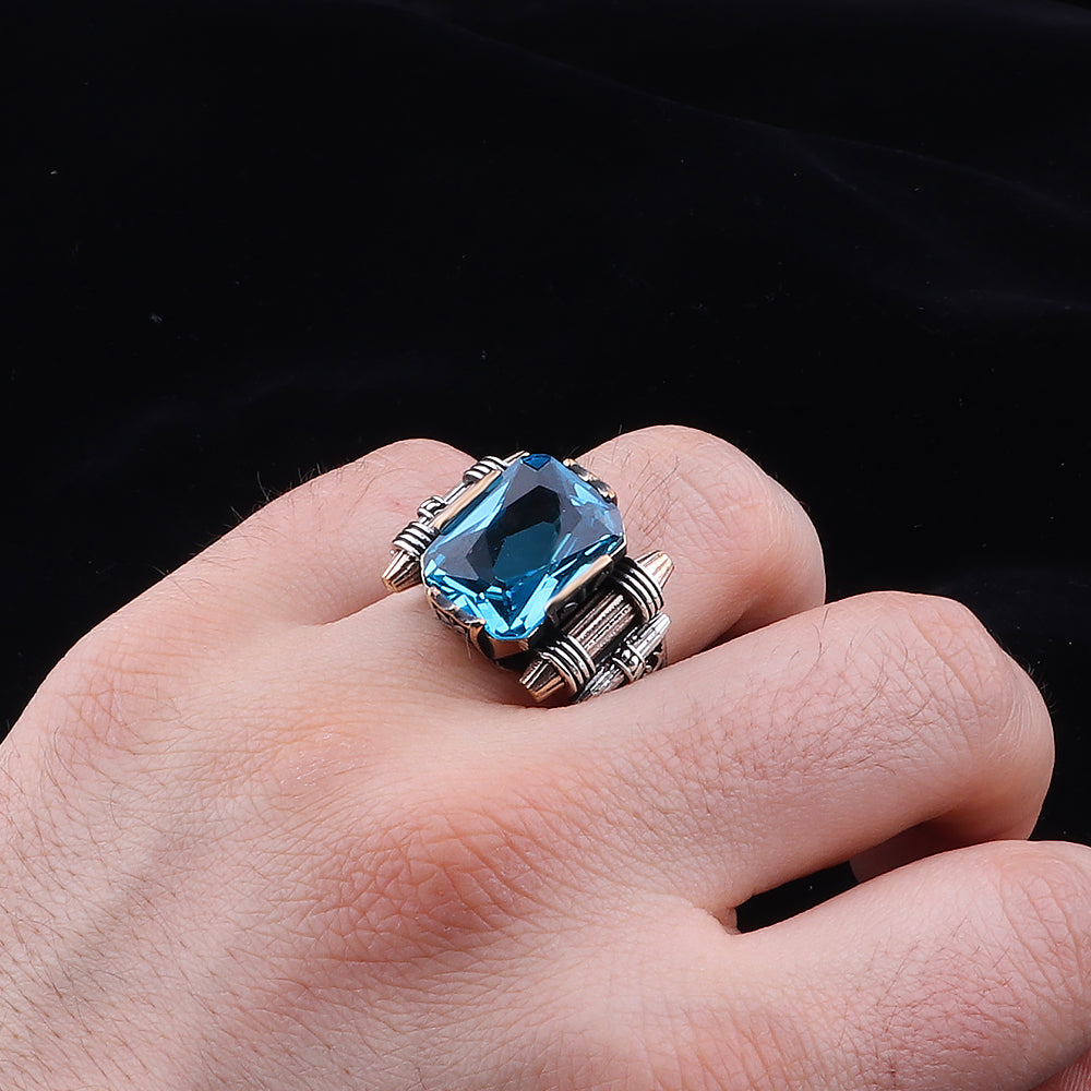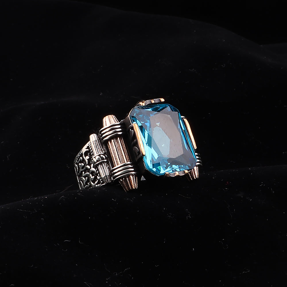 Aqua Taşlı 925 Ayar Gümüş Erkek Yüzük