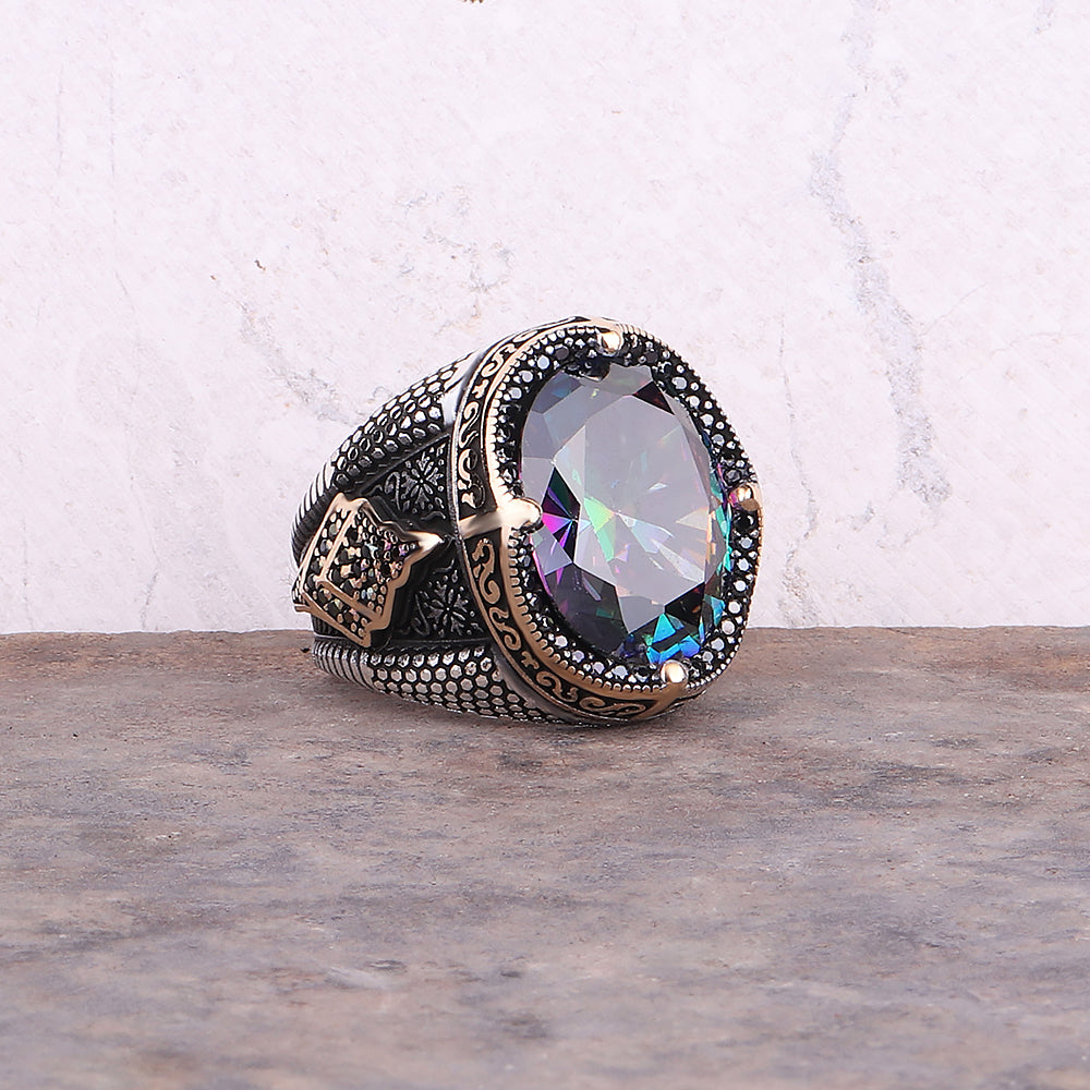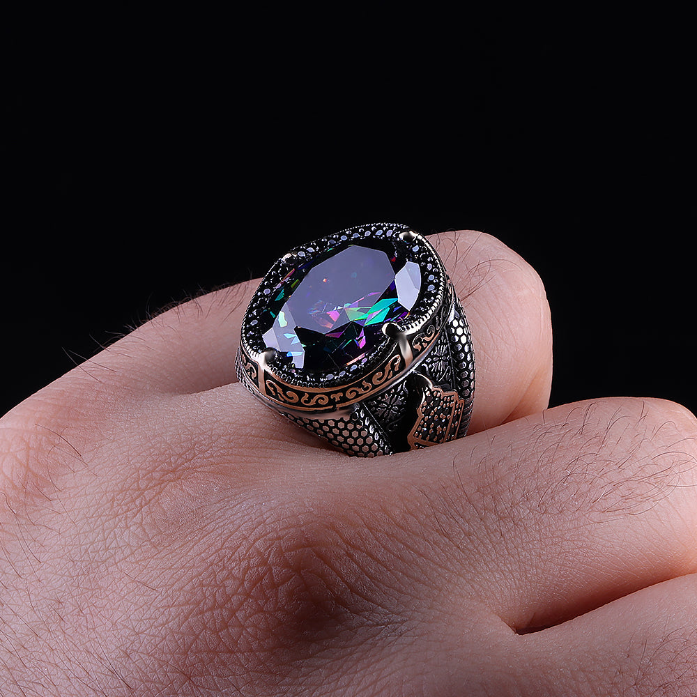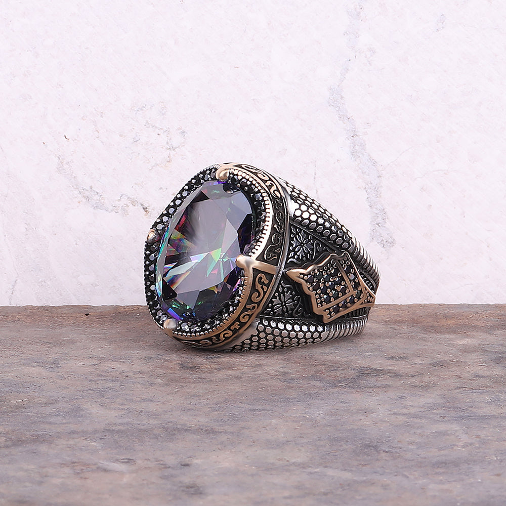 Mistik Topaz Taşlı 925 Ayar Gümüş Erkek Yüzüğü