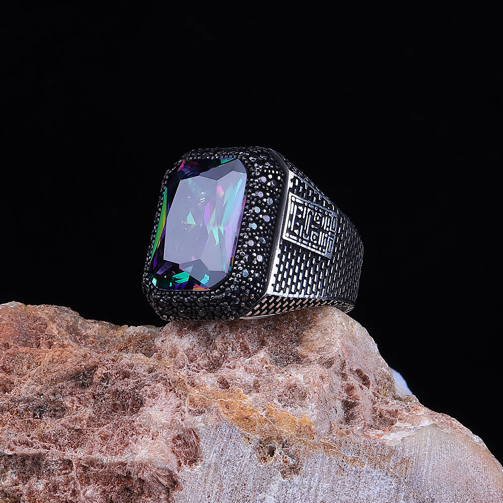 Mistik Topaz Taşlı 925 Ayar Gümüş Erkek Yüzük