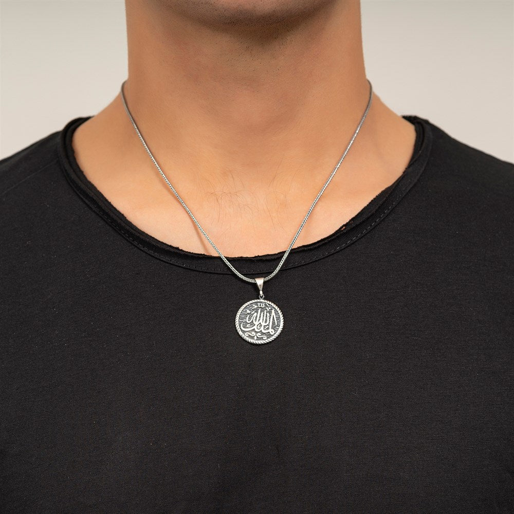 Erkek gümüş kolye modelleri arasında beğenilen modeller arasında işlemeli gümüş kolye modelleri mevcuttur. Yüzükhane özel tasarımlarından biri olan Mülk Allah'ındır ( Mülkü Allah ) Yazılı 925 Ayar Gümüş Kolye modelimizin özelliklerini aşağıda inceleyebilirsiniz.