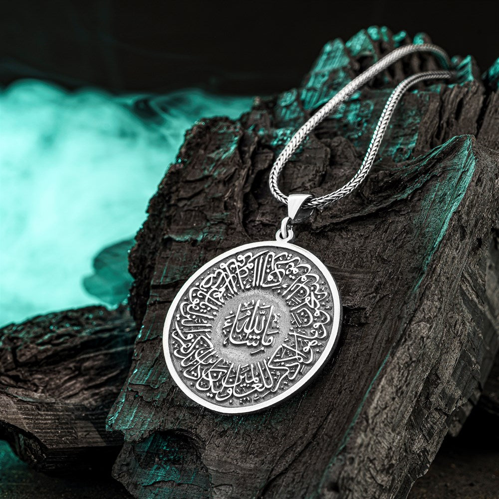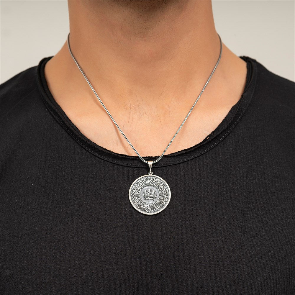 Nazar Ayeti İşlemeli 925 Ayar Erkek Gümüş Kolye