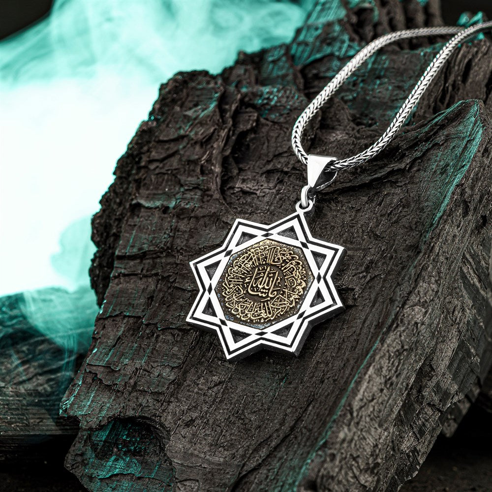 Erkek gümüş kolye modelleri arasında beğenilen modeller arasında ayet işlemeli gümüş kolye modelleri mevcuttur. Yüzükhane özel tasarımlarından biri olan Nazar Ayeti Kalem Suresi İşlemeli Gümüş Kolye modelimizin özelliklerini aşağıda inceleyebilirsiniz.