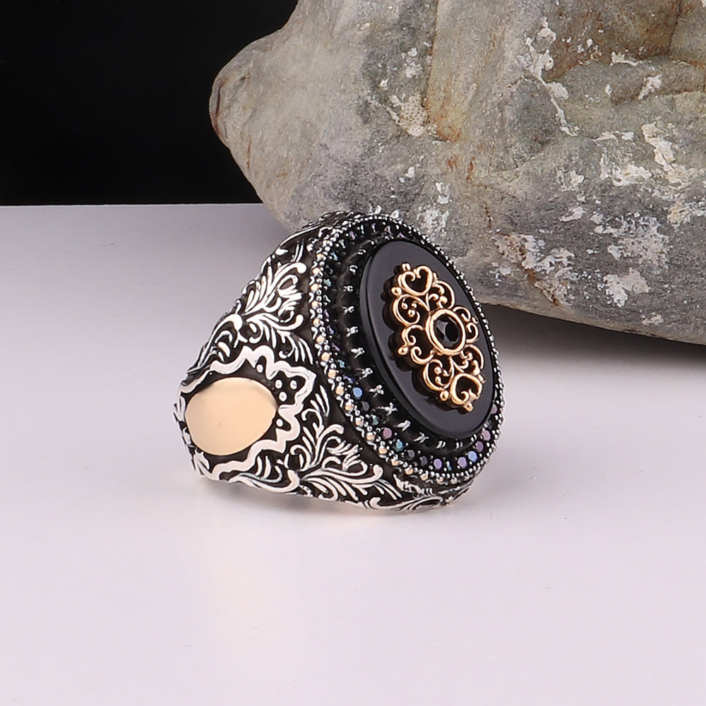 Oniks Taşlı 925 Ayar Gümüş Erkek Yüzük