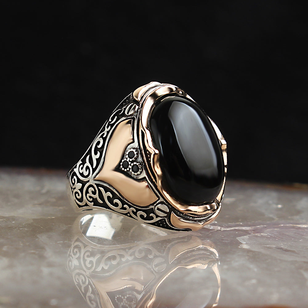 Oniks Taşlı 925 Ayar Gümüş Erkek Yüzük