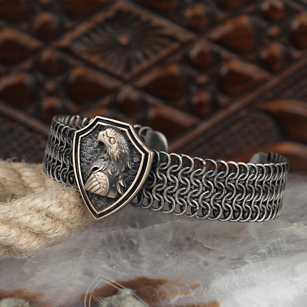 Kartal Motifli Örgü Model Eskitme Erkek Gümüş Bileklik