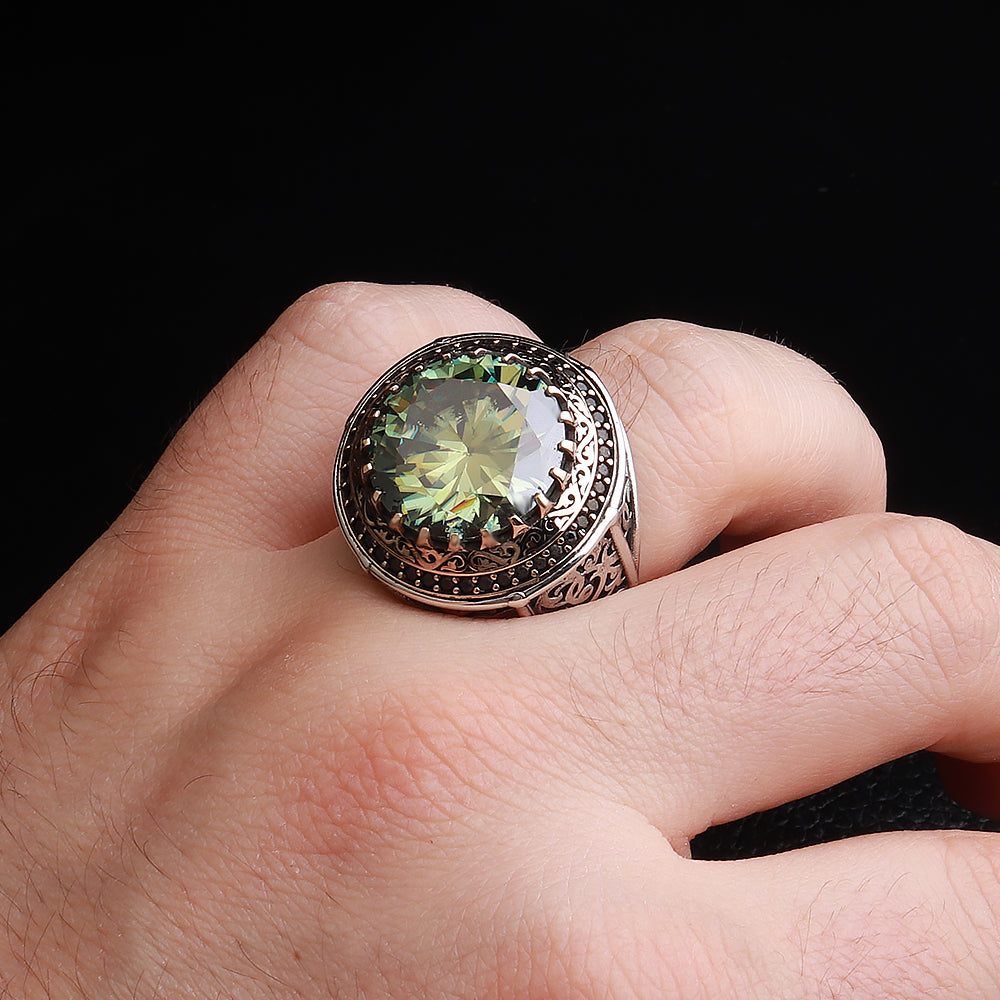 Telkari İşlemeli Orijinal Mozanit Taşlı 925 Ayar Gümüş Yüzük