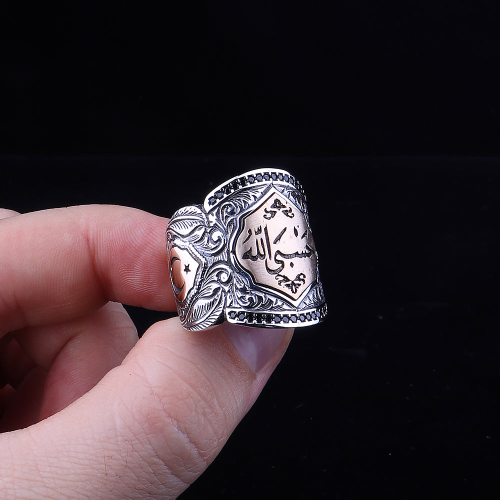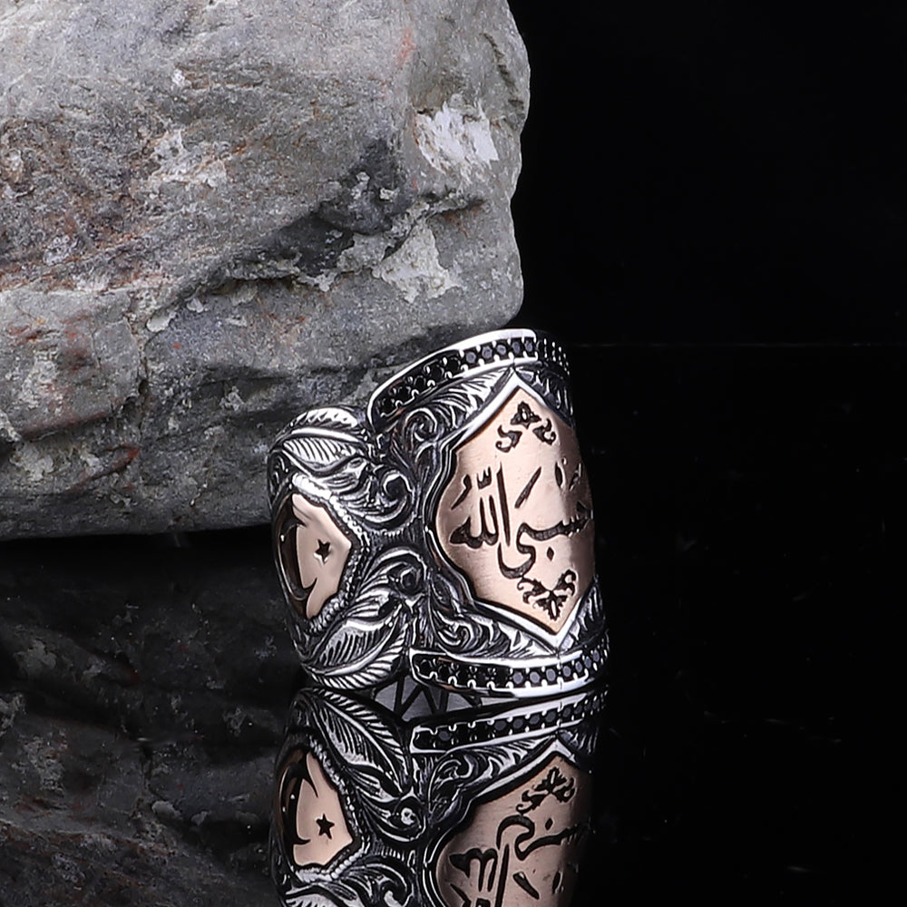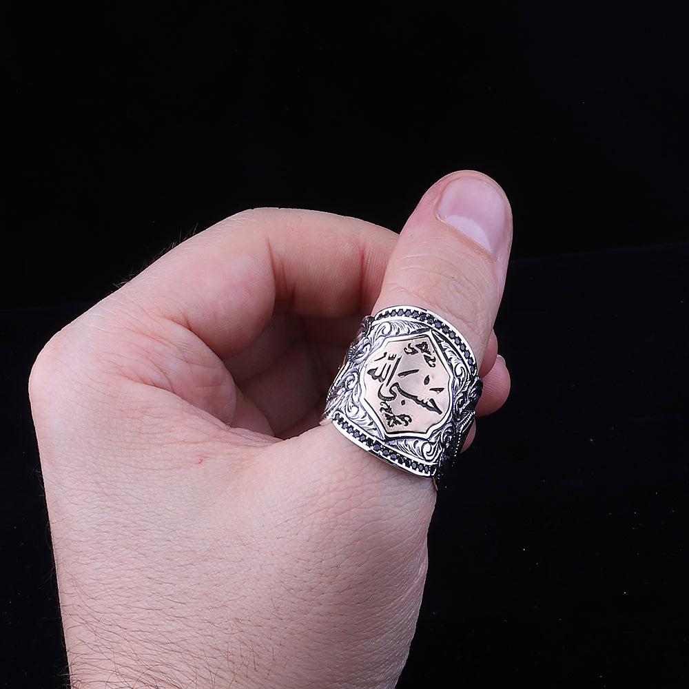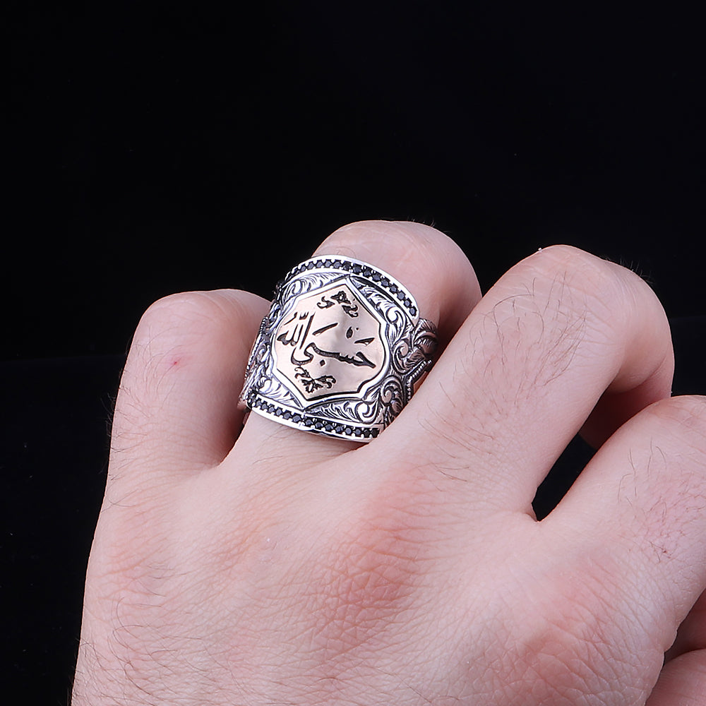 Özel Gravür İşlemeli Hasbiyallah Yazılı 925 Ayar Erkek Gümüş Yüzük