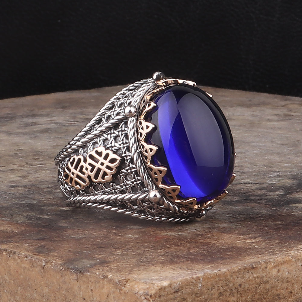 Safir Taşlı 925 Ayar Erkek Gümüş Yüzük