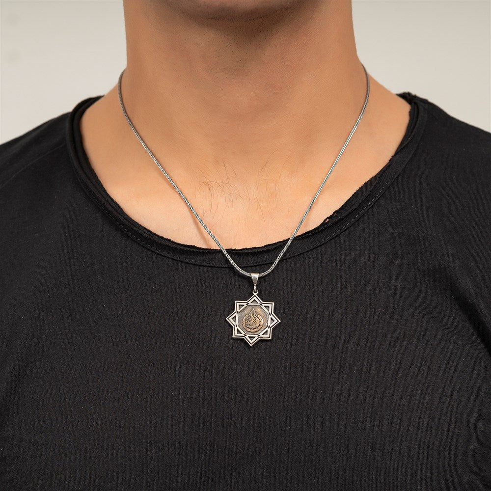 Selçuklu Yıldızı İçerisi Ayetel Kürsi İşlemeli Gümüş Kolye