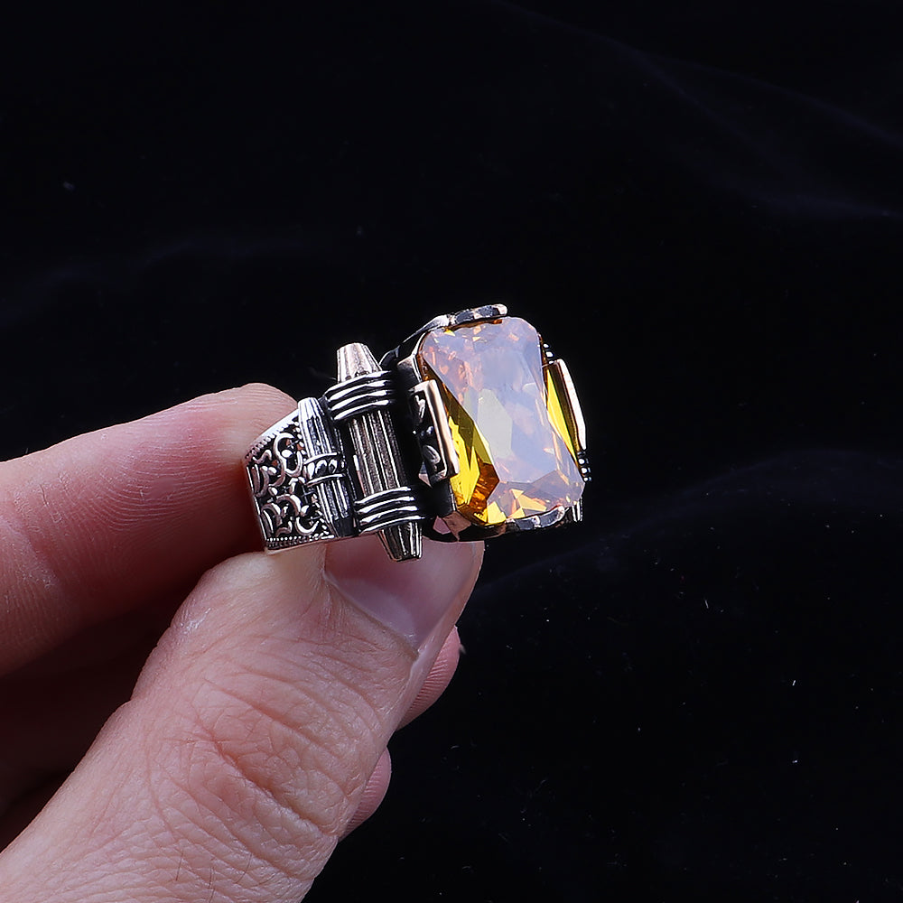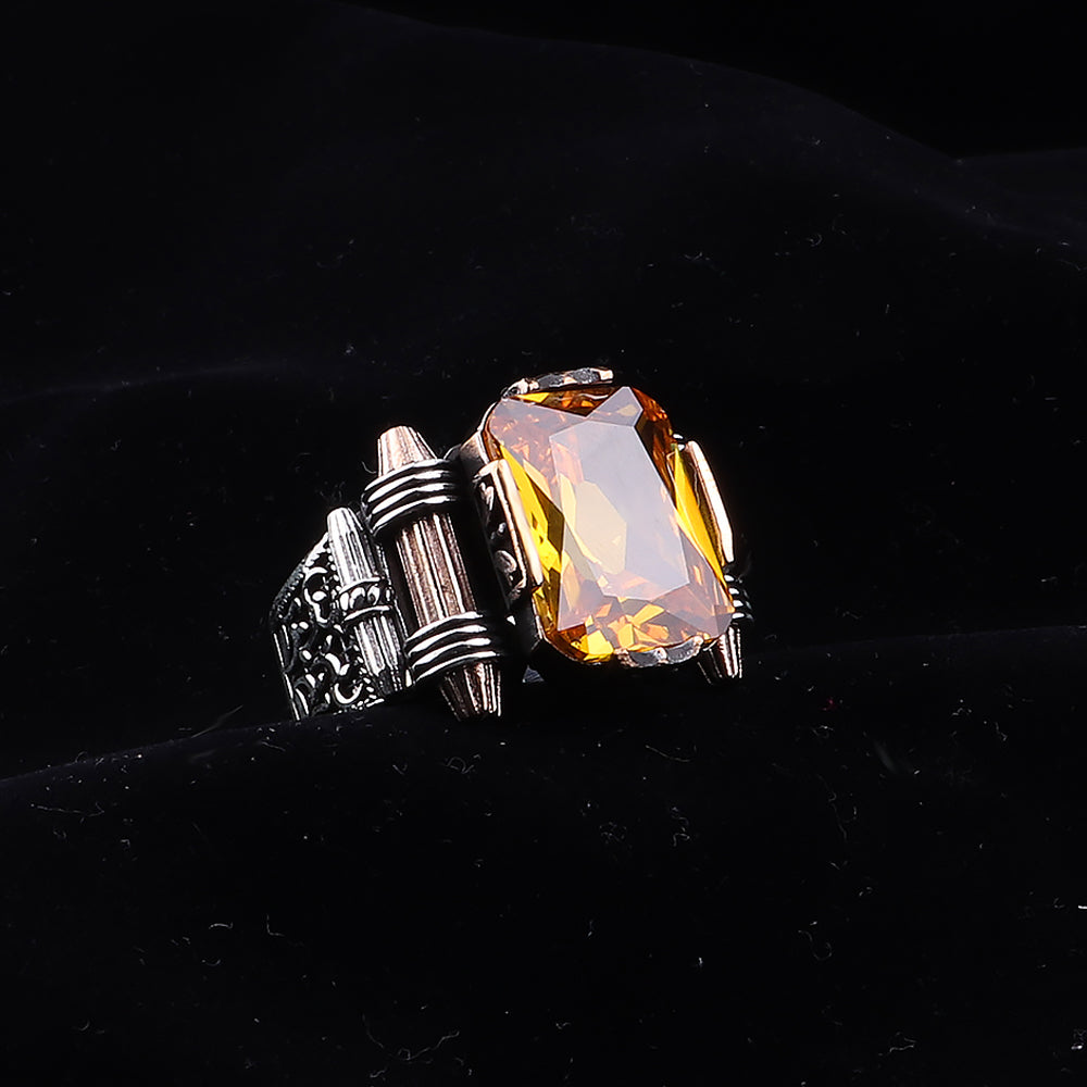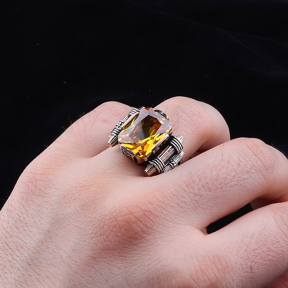 Sitrin Taşlı 925 Ayar Gümüş Erkek Yüzük