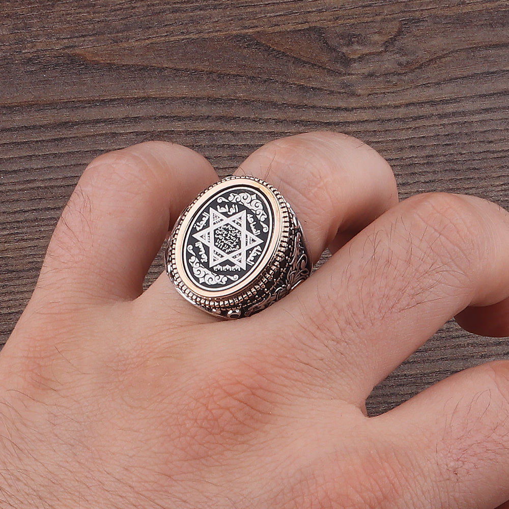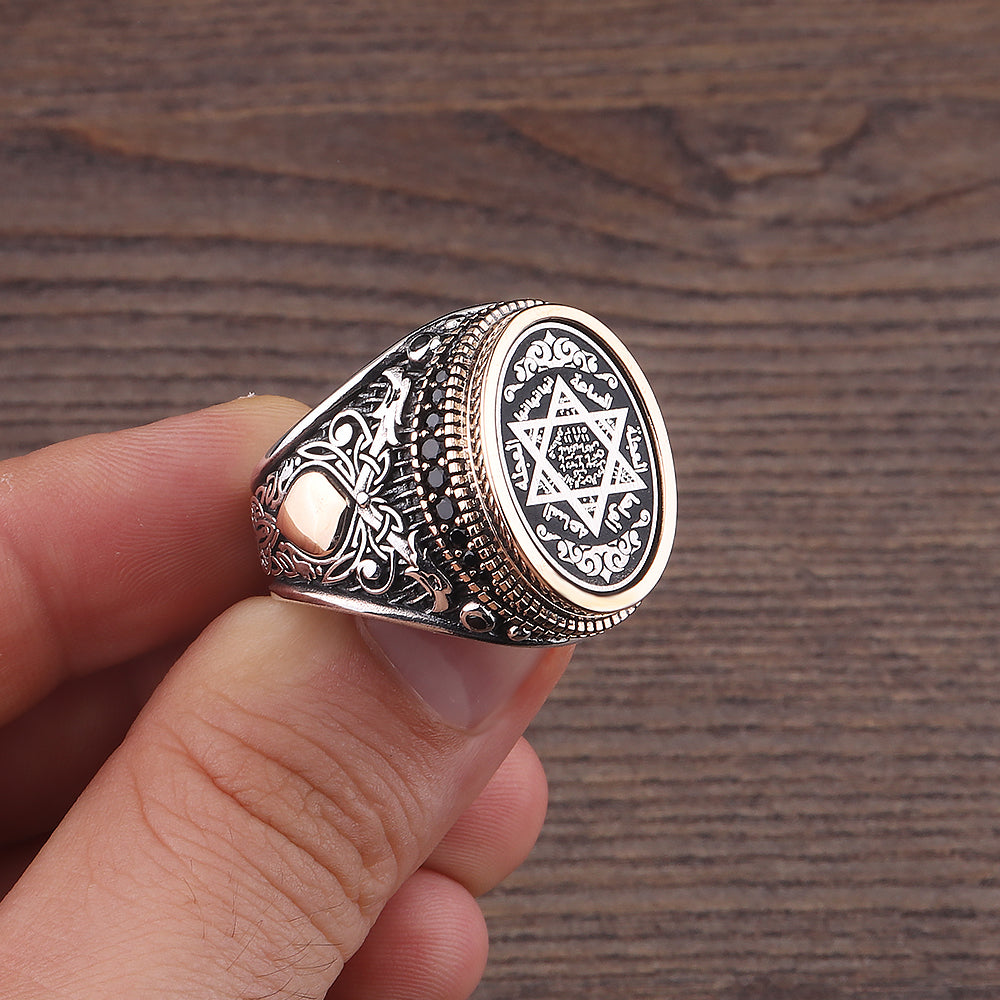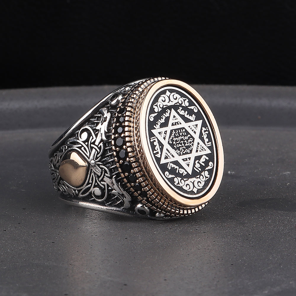 925 ayar gümüşten üretilen Süleyman Mührü işlemeli erkekliği, zarafet ve anlamı bir arada sunar. Bu özel tasarım, güç ve bilgeliği simgeler. Stil sahibinin vazgeçilmezi olan defter, günlük kullanımlar ve özel günler için ideal bir seçimdir.