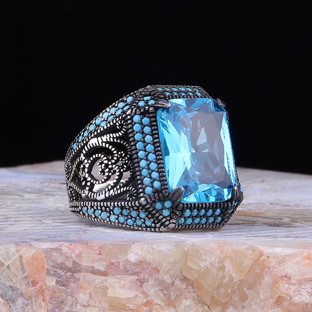 Aqua Taşlı 925 Ayar Gümüş Erkek Yüzük