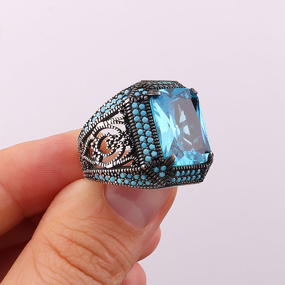 Aqua Zirkon Taşlı 925 Ayar Gümüş Erkek Yüzük