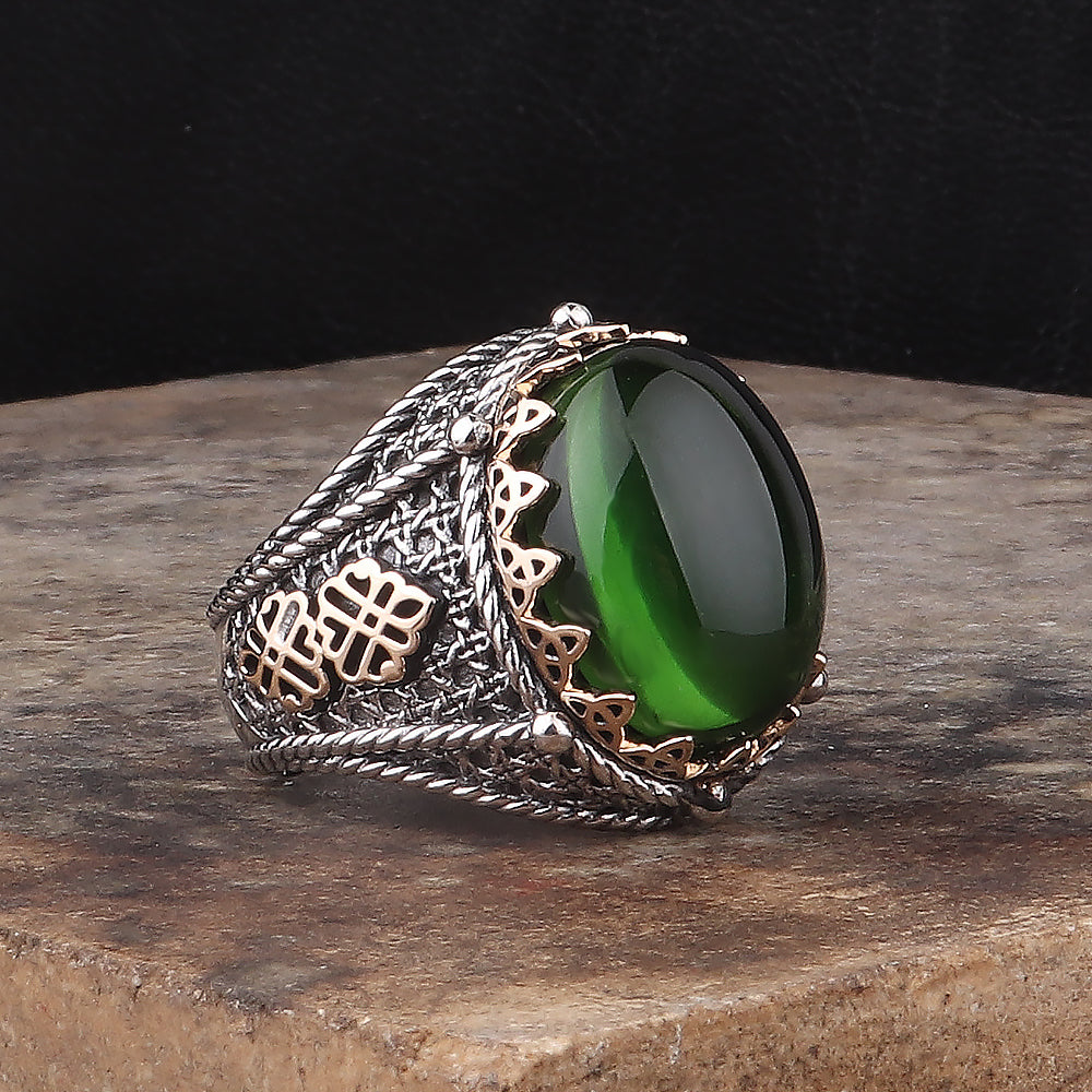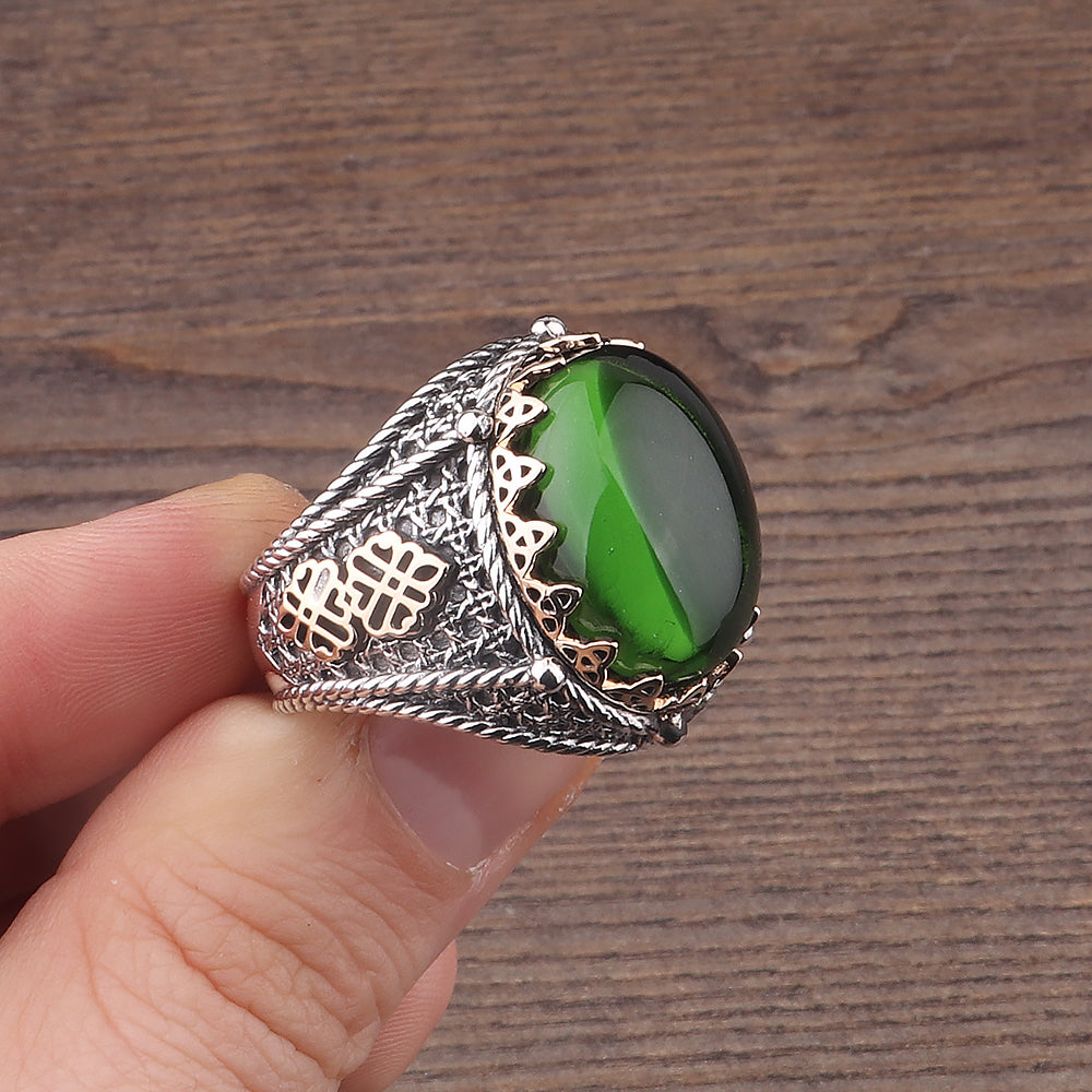 Yeşil oniks taşlı 925 ayar gümüş erkek yüzük, şık ve zarif tasarımıyla stilinize doğal bir dokunuş katıyor. El işçiliği ile üretilen bu özel yüzük, dayanıklı yapısı ve estetik muhafazasıyla dikkat çekiyor.